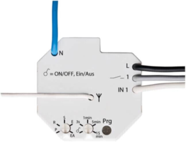 Schaltaktor WaveLINE 1-fach mit Nebenstelle. Zum Schalten elektrischer Lasten per Funktionen über Funk: EIN/AUS, Zeitschalter und Lichtszenensteuerung. Funktionen über Nebenstelle: EIN/AUS, Zeitschalter und Funktelegramm senden. Es können nur Aktoren mit gleicher Funktion verbunden werden. Bedienung über konventionelle Taster (2020 US, 2012/6 UK) möglich. Betätigung der Nebenstelle (über konventionellen Taster) führt zum Schalten des Ausgangs und zum Senden eines Funktelegramms. Betätigung der Nebenstelle in der Funktion EIN/AUS: Abwechselndes senden eines EIN/AUS-Telegramms. Betätigung der Nebenstelle in der Funktion Zeitschalter: Senden eines EIN-Telegramms. Hinweis: Wird die Nebenstelle vom 6701-101 auf den Universal-Dimmer WaveLINE 6704 eingelernt, lässt sich der Dimmer ein-, ausschalten, aber nicht dimmen. Für Busch-Wächter WaveLINE 6747 AGM-xxx.. Für Wandsender Waveline 6731-xxx, 6732-xxx und 6733-xxx. Für Handsender WaveLINE 6780. Abschaltverzögerung: 5 s, 1-5-15 min. einstellbar. Repeaterfunktion zur Reichweitenerhöhung aktivierbar. Zum universellen An- oder Einbau. 3-Leiter-Anschlusstechnik (Neutralleiter erforderlich). Zur Montage in (tiefe) Unterputzdosen nach DIN 49073. Ansteuerbar über bis zu 32 Senderadresse oder 16 Szenen. Sende-/Empfangsfrequenz: 868 MHz. Reichweite: ca. 100 m (Freifeld). : WaveLINE