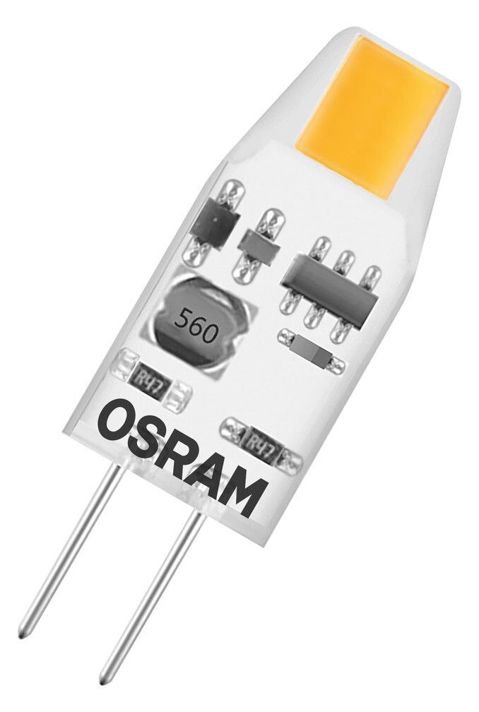 Kleine 12 V-Niedervolt-LED-Lampen mit Retrofit-Stecksockel. Produkteigenschaften: Kompatibel mit vielen handelsüblichen elektronischen Vorschaltgeräten (siehe auch Kompatibilitätsliste ). LED-Alternative zu Niedervolthalogenlampen. Sockel: G4. Produktvorteile: Extrem kleine Bauform. Variabler Einsatz an Gleich- und Wechselspannung möglich. Gute Rundum-Lichtausstrahlung. Ideal für den dekorativen und frei brennenden Einsatz. Lange Lebensdauer von bis zu 15.000 h. Drei Jahre Garantie. Geringerer Energieverbrauch als Glüh- oder Halogenlampen. Anwendungsgebiete: Dekorative Anwendungen. Für stimmungsvolle Lichtakzente in Wohnräumen und Partykellern. Einsatz im Ausenbereich nur in geeigneten Ausenleuchten. Sicherheitshinweise: Lampe nicht berühren, wenn sie beschädigt ist.. Betrieb mit defektem Ausenkolben nicht zulässig.. Um die volle Lichteffizienz und Produktlebensdauer sicherzustellen, wird empfohlen Glas oder Abdeckung der Leuchte zu entfernen..