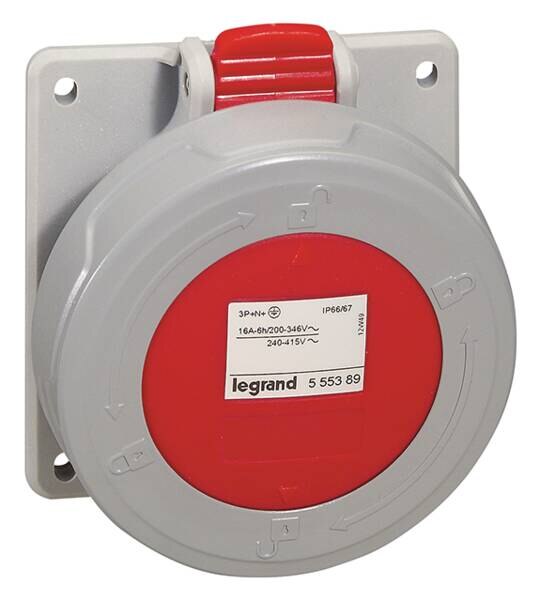 Legrand CEE-Anbausteckdose P17 Tempra Pro, 5-polig, 16 A, 250 VAC, rot, Schutzart: IP 66/67.