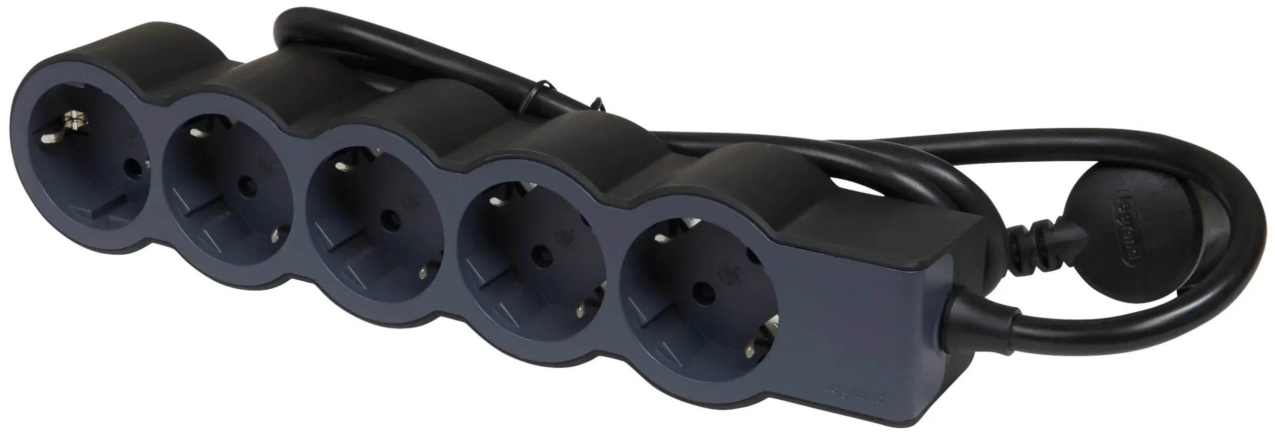 Flache Steckdosenleiste 5x Steckdose, 1,5 Meter Kabel Farbe: Schwarz