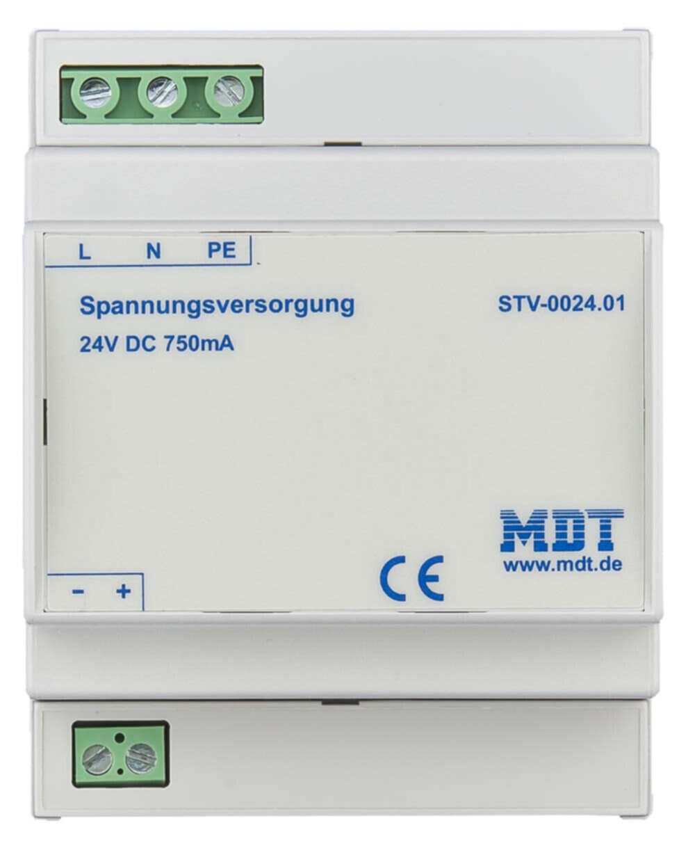 MDT Spannungsversorgung, 4TE REG, 750 mA, 24 V DC SELV. Ausführung mit Dauerstrom 750 mA. SELV Spannungsversorgung 24 V DC für universelle Anwendungen. Spannungsversorgung für 24 V Binäreingänge, Fensterkontakte, etc.. Geeignet für VisuControl Touchpanel. Versorgungsspannung 230 V AC. Kurzschlussfest. 3 Jahre Produktgarantie.