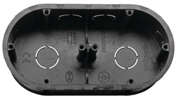 UP Schalterdose, 2-fach, 143x70x41mm, schwarz, IP20, anreihbar, mit Kupplungssystem für Kombi-Normabstand 71mm und Mehrfach-Befestigungsmöglichkeit für Gerätetragering, Schraubennormabstand 60mm