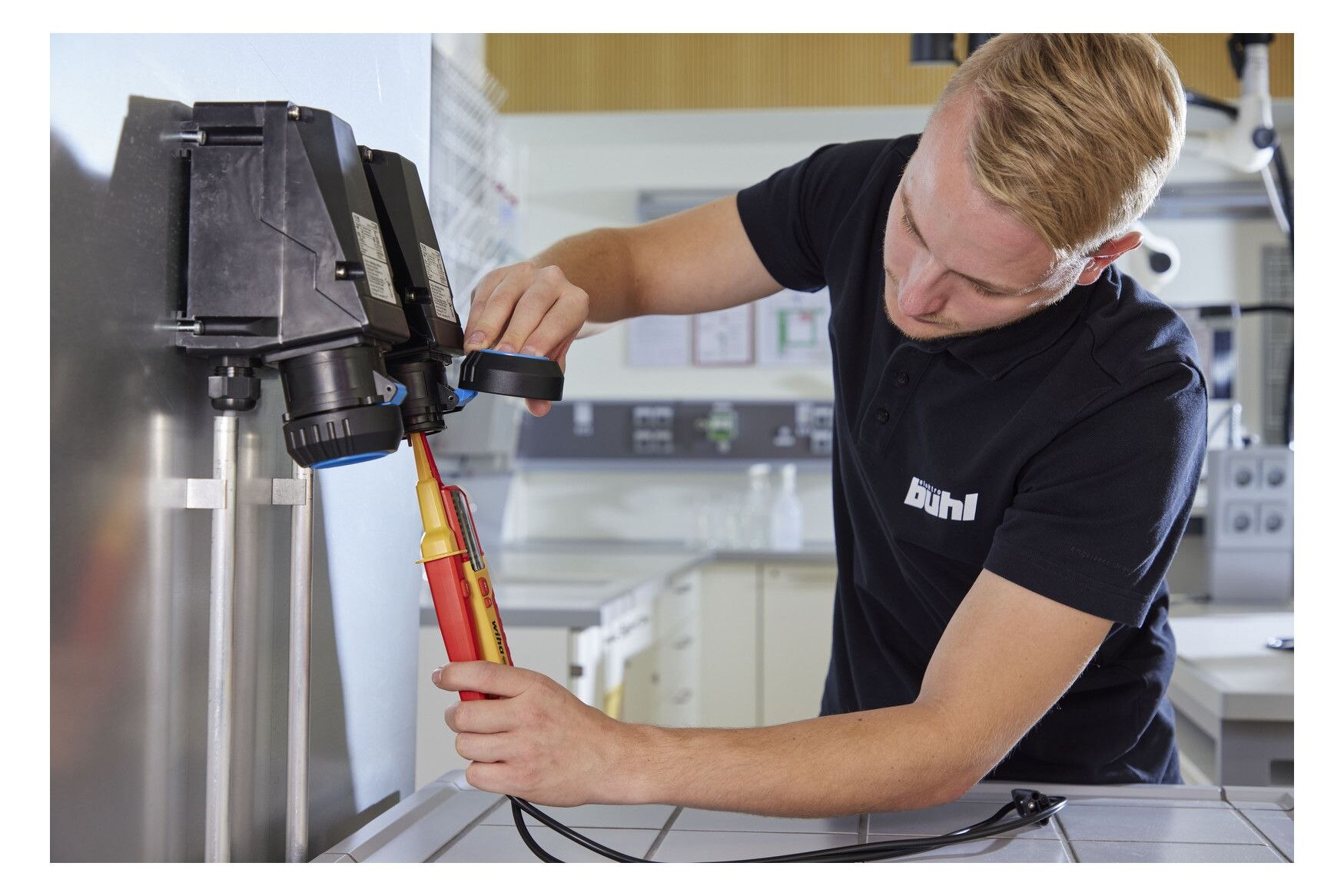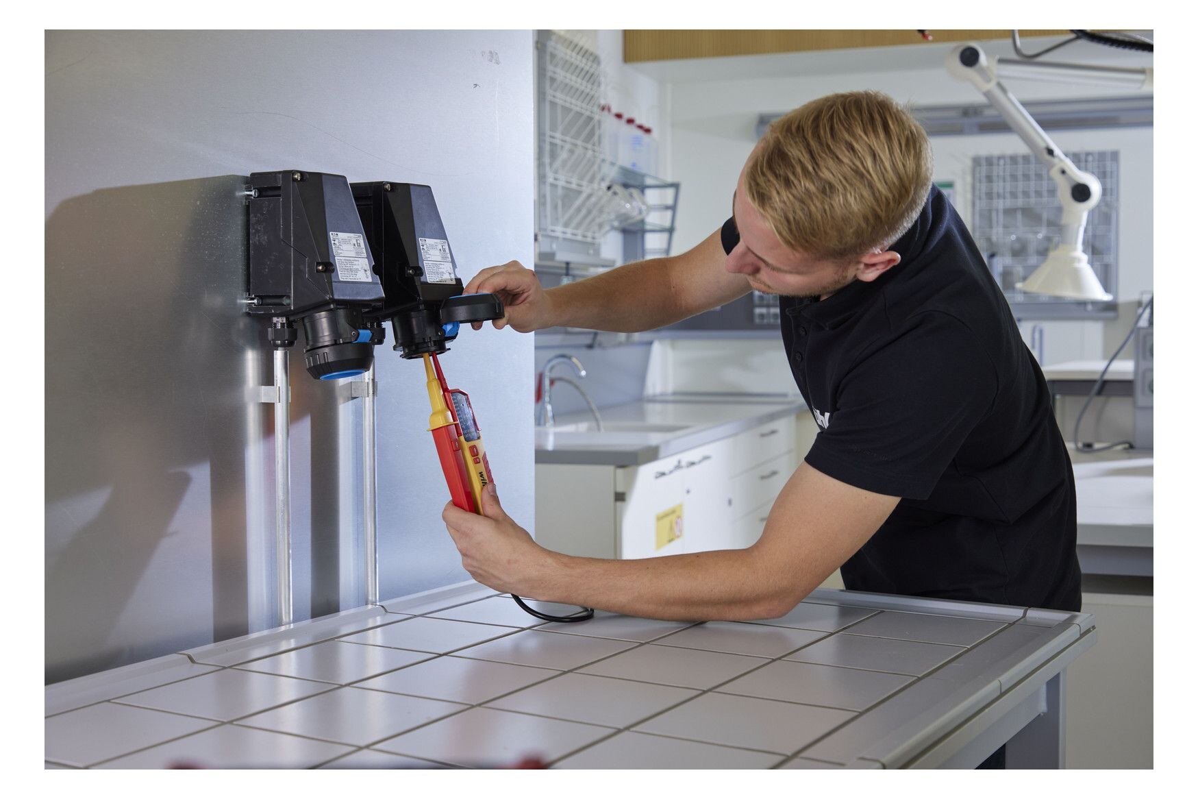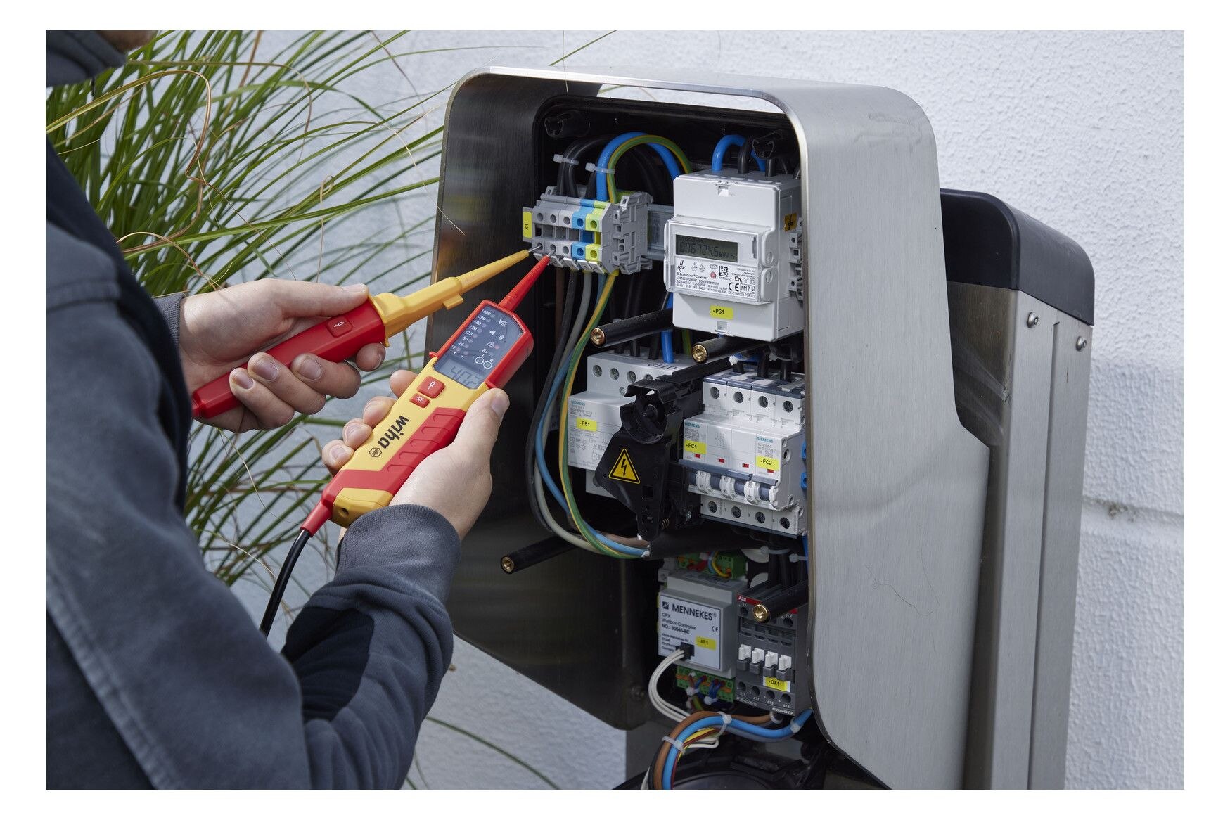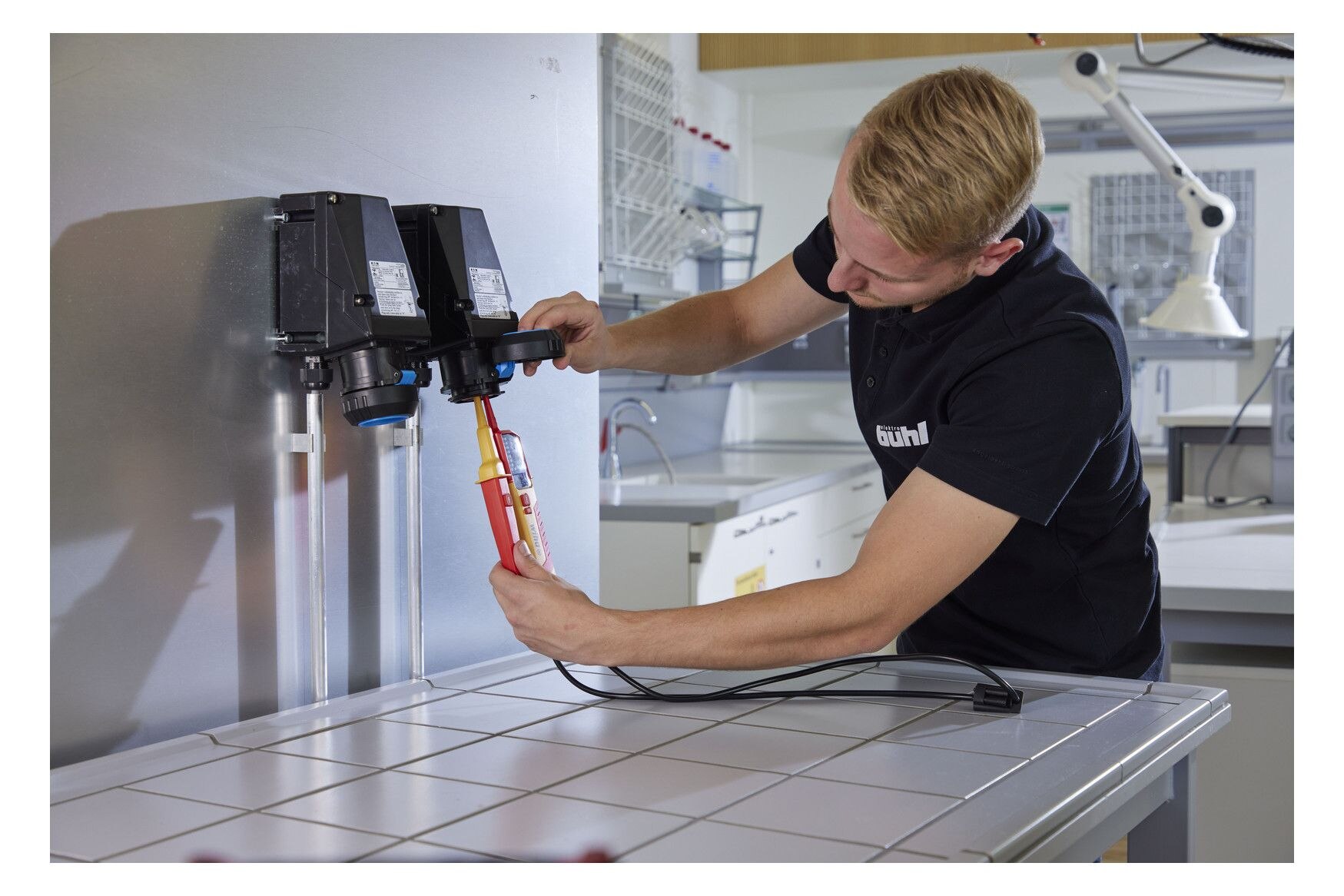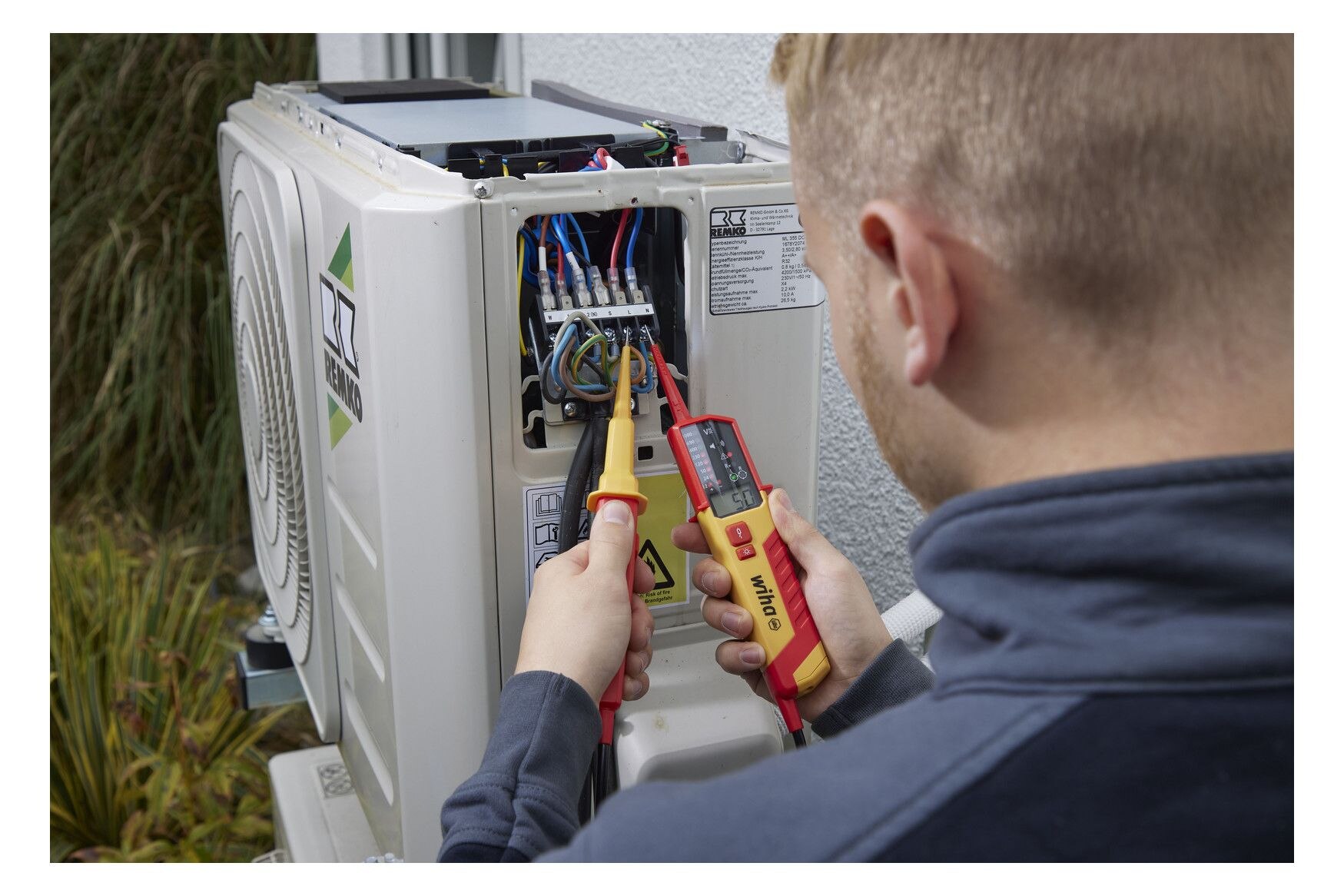 Erhöht Ihre Flexibilität: Deckt den relevanten Spannungsbereich für Arbeiten eines Elektrikers ab. Vereinfacht Ihre Arbeit: Grose LCD-Anzeige mit Hintergrundbeleuchtung, LED-Skala und Signalton für einfach ablesbare Messergebnisse. Vereinfacht Ihre Arbeit: Eine integrierte Taschenlampenfunktion sorgt für optimale Lichtverhältnisse. Erfüllt Ihre Ansprüche: Überprüfung der FI-Auslösung durch zwei Lasttasten. Mase: 240 x 75 x 30 mm Anwendung: Zum Feststellen von Spannungsfreiheit. Anwendung: Zur normgerechten Spannungsprüfung, Durchgangsprüfung, Drehfeldprüfung und Widerstandsmessung inkl. FI-Schutzschalter Auslösung. Messkategorie: CAT III 1.000 V . CAT IV 600 V Normen: Photovoltaik geeignet 0,5 - 1.000 V AC . 1.500 V DC CAT III 1.000 V . CAT IV 600 V Einhandprüfung Drehfeldmessung FI-Lasttasten Sicherheitsregel: Spannungsfreiheit feststellen! Der Spannungs- und Durchgangsprüfer von Wiha ist ihr idealer täglicher Begleiter um diese Voraussetzung der Sicherheitsregel einfach zu prüfen und Sie bei vielfältigen Anforderungen in Ihrem Berufsalltag zu unterstützen. Er ermöglicht eine Spannungsprüfung für einen umfangreichen Messbereich von 0,5V bis 1.000 V AC bzw. 1.500 V DC. Zusätzlich bietet der Spannungsprüfer die Möglichkeit der Durchgangsprüfung, der optischen Drehfeldprüfung, der Einpolprüfung sowie der automatischen Polaritätserkennung. Darüber hinaus können Widerstandsmessungen und Frequenzmessungen durchgeführt werden. Die Messergebnisse sind dank einer grosen digitalen LCD-Anzeige, mit Hintergrundbeleuchtung sowie einer LED-Anzeige sofort ablesbar. Ein zusätzlicher Signalton signalisiert den Stromfluss bei der Durchgangsprüfung. Auserdem kann die Prüfung an Steckdosen komfortabel mit Hilfe des integrierten Abstandhalters einhändig durchgeführt werden. Zusätzlich bietet der Spannungsprüfer von Wiha, dank integrierter Taschenlampenfunktion, optimale Lichtverhältnisse, auch in schlecht beleuchteten Arbeitsumgebungen. Gleichzeitiges Drücken der Tasten an beiden Griffen der Prüfspitzen ermöglicht die Funktionsprüfung des FI-Schutzschalters durch das Zuschalten einer Last. Gemäs den Messkategorien CAT III bis 1.000 V und CAT IV bis 600 V bietet der Spannungs- und Durchgangsprüfer von Wiha maximale Sicherheit für Arbeiten im Bereich der Gebäudeinstallation sowie direkt an Quellen der Niederspannungsinstallation. IEC.EN 61243-3:2014, IP64, CE