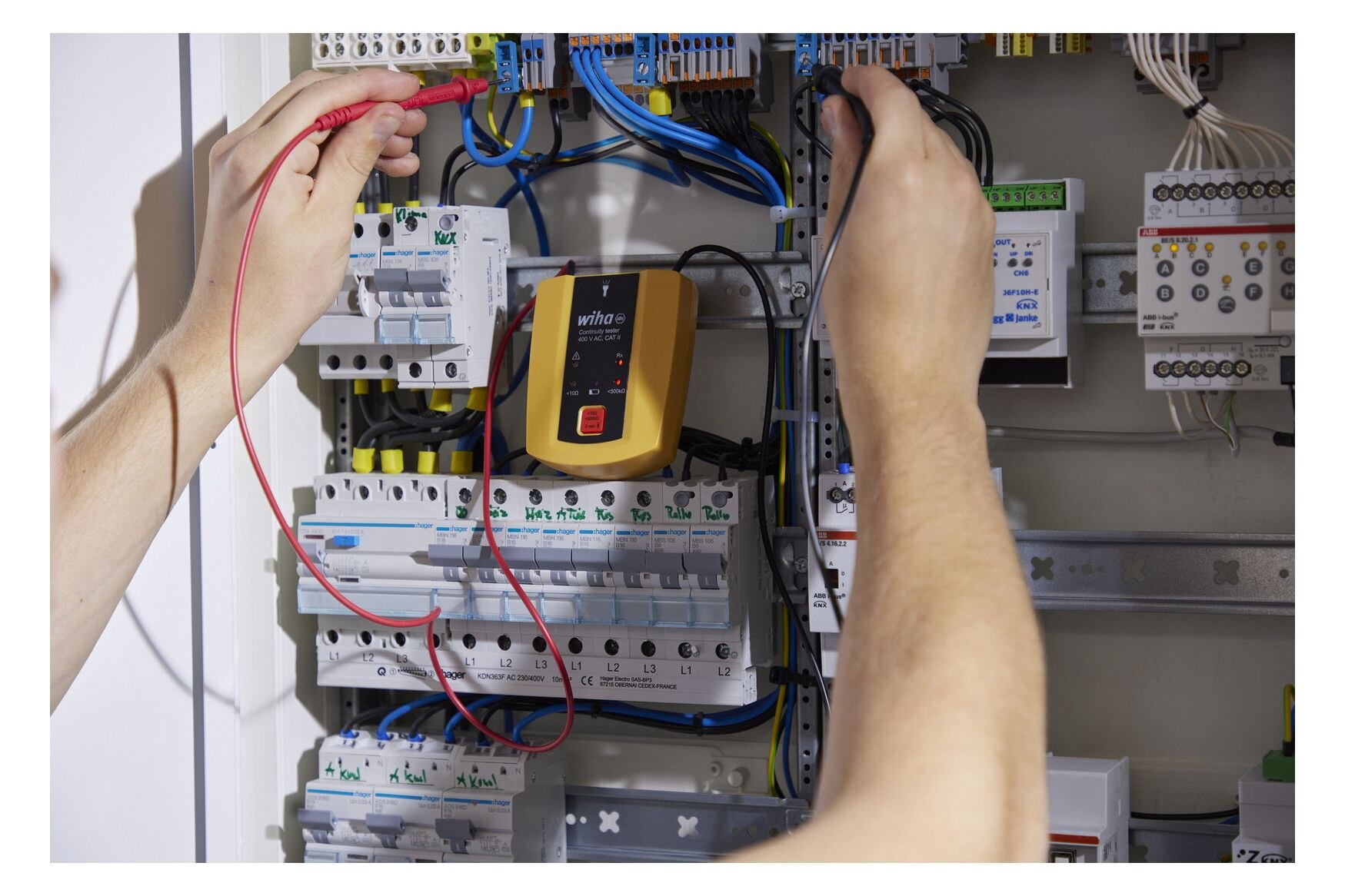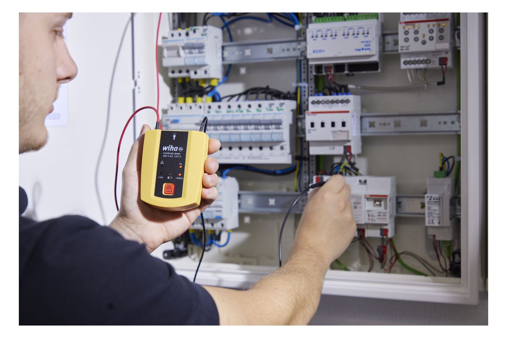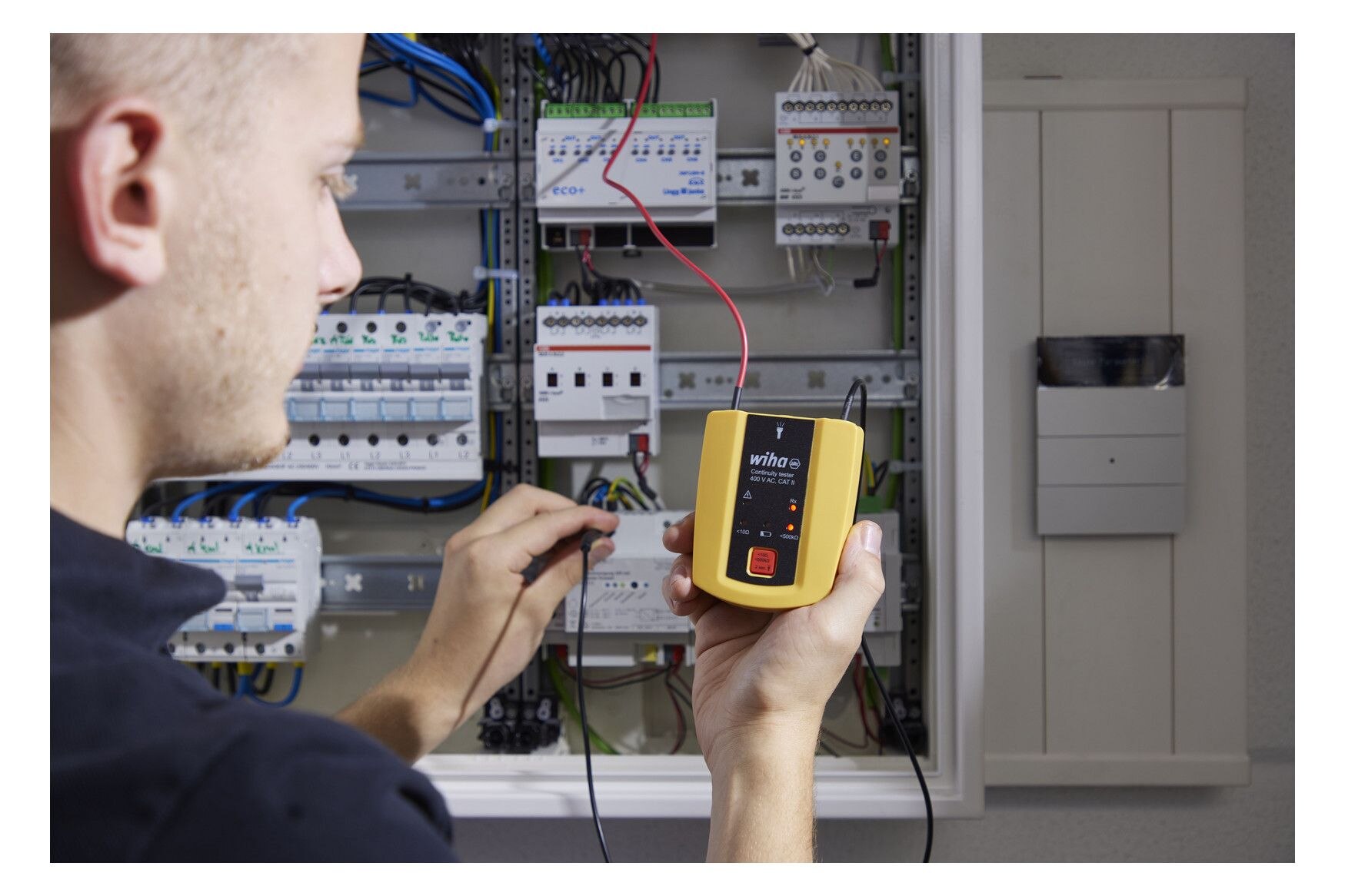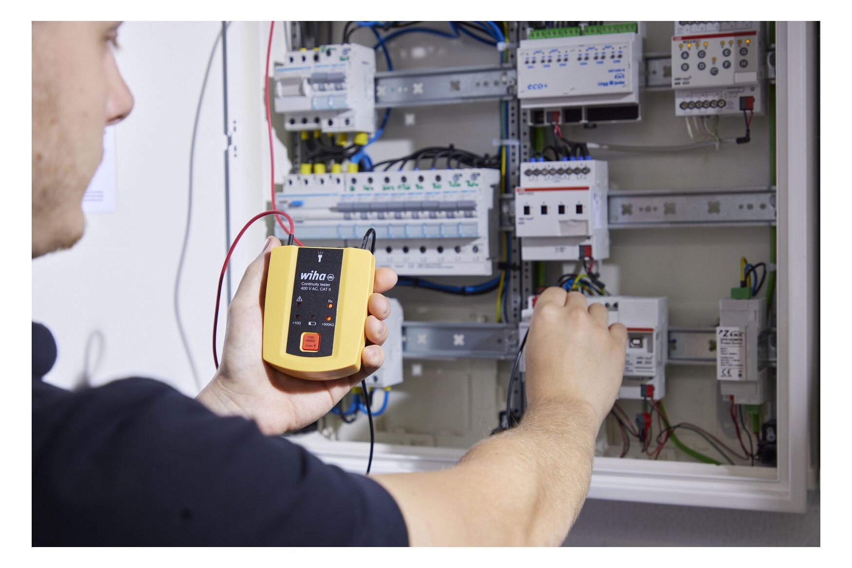 Vereinfacht Ihre Arbeit: Einfache Prüfung dank LED-Anzeige und Signalton. Vereinfacht Ihre Arbeit: Eine integrierte Taschenlampenfunktion sorgt für optimale Lichtverhältnisse. Erhöht Ihre Flexibilität: Schnelle Durchgangsprüfung bis zu 20 mA Prüfstrom und zwei grosen Widerstandsbereichen bis 10 O und bis 500 kO. Mase: 9,0 x 7,5 cm Anwendung: Für die Überprüfung elektischer Verbindungen, Bauteile und Geräte. Messkategorie: CAT II 400 V 400 V . 20 mA . 10 O . < 500 kO Sehr lauter Signalton LED-Anzeige Integrierte Taschenlampenfunktion Wurde die Installation korrekt durchgeführt? Mit dem Durchgangsprüfer von Wiha können Stromkreise und elektrische Verbraucher schnell und unkompliziert auf Durchgang getestet werden. Dank einem Signalton und einer LED-Anzeige ist die Durchgangsmessung einfach ablesbar. Wird das Gerät 30 Sekunden lang nicht verwendet, schaltet es sich automatisch aus um Energie zu sparen. Zusätzlich bietet der Durchgangsprüfer von Wiha dank integrierter Taschenlampenfunktion optimale Lichtverhältnisse, auch in schlecht beleuchteten Arbeitsumgebungen. Sowohl im Bereich von Prüfstrom als auch in Widerstandsbereichen erzeugt der Durchgangsprüfer von Wiha zuverlässige Prüfergebnisse und bietet gemäs der CAT II bis 400 V maximale Sicherheit. IEC.EN 61010-1, IP40, CE