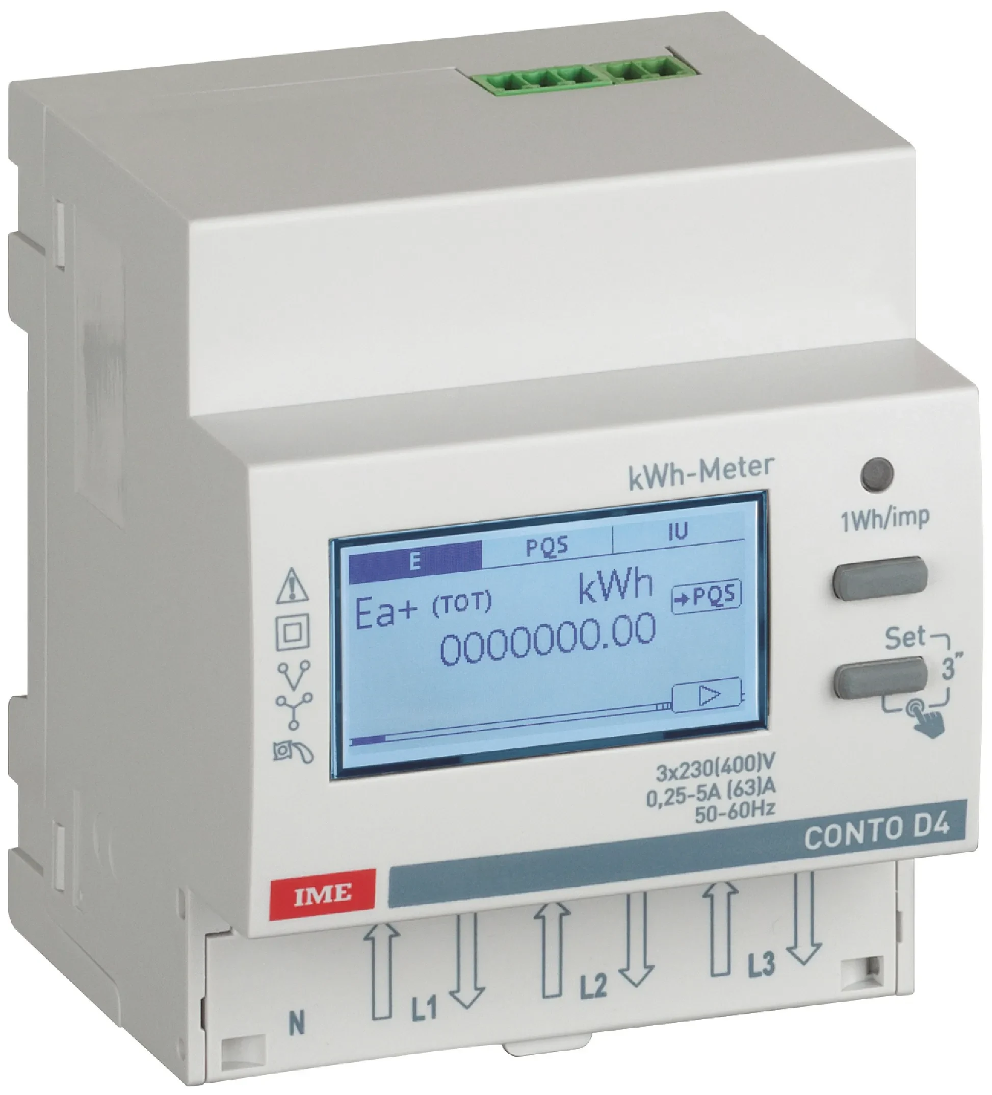 Energiezähler Conto D4 63A, 400V, 50-60Hz, selbstversorgend, Impulseingang, Impulsausgang