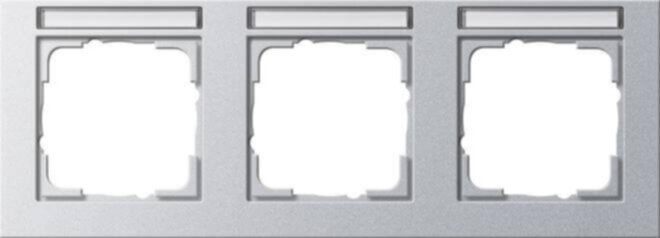 Abdeckrahmen Gira E2 mit Beschriftungsfeld Farbe Alu 3fach waagerecht Merkmale: Bruchsicher. Sprühnebeldicht. Abdeckrahmen mit transparentem Sichtfenster zur Beschriftung der Einsätze. Besonders geeignet für Objekte, in denen Elektroinstallation gekennzeichnet und dokumentiert werden muss, bspw. in Verwaltungen, gewerblichen Betrieben, Flughäfen, Unternehmen und Krankenhäusern. Hinweise : Nicht zu verwenden mit: Dichtungsset IP44, Aufputz-Gehäuse flache Bauweise, Aufputz-Gehäuse.