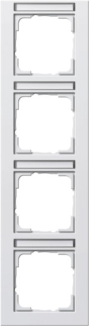 Abdeckrahmen Gira E2 mit Beschriftungsfeld Reinweiß seidenmatt 4fach senkrecht Merkmale: Bruchsicher. Sprühnebeldicht. Abdeckrahmen mit transparentem Sichtfenster zur Beschriftung der Einsätze. Besonders geeignet für Objekte, in denen Elektroinstallation gekennzeichnet und dokumentiert werden muss, bspw. in Verwaltungen, gewerblichen Betrieben, Flughäfen, Unternehmen und Krankenhäusern. Hinweise : Nicht zu verwenden mit: Dichtungsset IP44, Aufputz-Gehäuse flache Bauweise, Aufputz-Gehäuse.