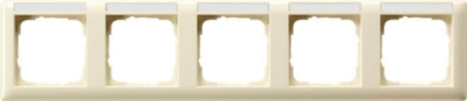 Abdeckrahmen Gira Standard 55 mit Beschriftungsfeld Cremeweiß glänzend 5fach waagerecht Merkmale: Bruchsicher. Sprühnebeldicht. Abdeckrahmen mit transparentem Sichtfenster zur Beschriftung der Einsätze. Besonders geeignet für Objekte, in denen Elektroinstallation gekennzeichnet und dokumentiert werden muss, bspw. in Verwaltungen, gewerblichen Betrieben, Flughäfen, Unternehmen und Krankenhäusern. Hinweise : Nicht zu verwenden mit: Dichtungsset IP44, Aufputz-Gehäuse flache Bauweise, Aufputz-Gehäuse.