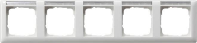 Abdeckrahmen Gira Standard 55 mit Beschriftungsfeld Reinweiß glänzend 5fach waagerecht Merkmale: Bruchsicher. Sprühnebeldicht. Abdeckrahmen mit transparentem Sichtfenster zur Beschriftung der Einsätze. Besonders geeignet für Objekte, in denen Elektroinstallation gekennzeichnet und dokumentiert werden muss, bspw. in Verwaltungen, gewerblichen Betrieben, Flughäfen, Unternehmen und Krankenhäusern. Hinweise : Nicht zu verwenden mit: Dichtungsset IP44, Aufputz-Gehäuse flache Bauweise, Aufputz-Gehäuse.