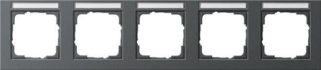 Abdeckrahmen Gira E2 mit Beschriftungsfeld Anthrazit 5fach waagerecht Merkmale: Bruchsicher. Sprühnebeldicht. Abdeckrahmen mit transparentem Sichtfenster zur Beschriftung der Einsätze. Besonders geeignet für Objekte, in denen Elektroinstallation gekennzeichnet und dokumentiert werden muss, bspw. in Verwaltungen, gewerblichen Betrieben, Flughäfen, Unternehmen und Krankenhäusern. Hinweise : Nicht zu verwenden mit: Dichtungsset IP44, Aufputz-Gehäuse flache Bauweise, Aufputz-Gehäuse.