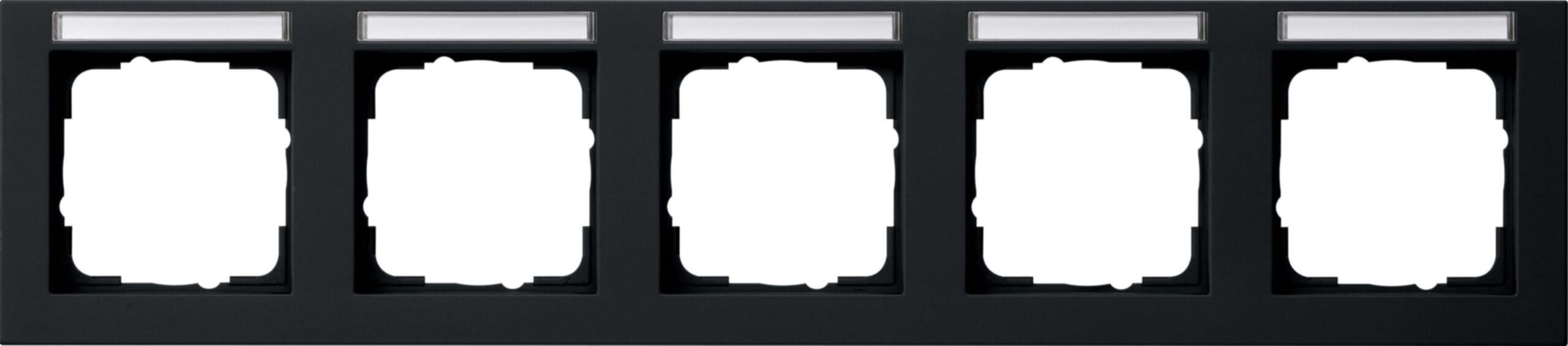 Abdeckrahmen Gira E2 mit Beschriftungsfeld Schwarz matt 5fach waagerecht Merkmale: Bruchsicher. Sprühnebeldicht. Abdeckrahmen mit transparentem Sichtfenster zur Beschriftung der Einsätze. Besonders geeignet für Objekte, in denen Elektroinstallation gekennzeichnet und dokumentiert werden muss, bspw. in Verwaltungen, gewerblichen Betrieben, Flughäfen, Unternehmen und Krankenhäusern. Hinweise : Nicht zu verwenden mit: Dichtungsset IP44, Aufputz-Gehäuse flache Bauweise, Aufputz-Gehäuse.