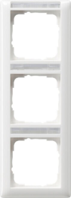 Abdeckrahmen Gira Standard 55 mit Beschriftungsfeld Reinweiß glänzend 3fach senkrecht Merkmale: Bruchsicher. Sprühnebeldicht. Abdeckrahmen mit transparentem Sichtfenster zur Beschriftung der Einsätze. Besonders geeignet für Objekte, in denen Elektroinstallation gekennzeichnet und dokumentiert werden muss, bspw. in Verwaltungen, gewerblichen Betrieben, Flughäfen, Unternehmen und Krankenhäusern. Hinweise : Nicht zu verwenden mit: Dichtungsset IP44, Aufputz-Gehäuse flache Bauweise, Aufputz-Gehäuse.
