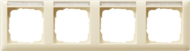 Abdeckrahmen Gira Standard 55 mit Beschriftungsfeld Cremeweiß glänzend 4fach waagerecht Merkmale: Bruchsicher. Sprühnebeldicht. Abdeckrahmen mit transparentem Sichtfenster zur Beschriftung der Einsätze. Besonders geeignet für Objekte, in denen Elektroinstallation gekennzeichnet und dokumentiert werden muss, bspw. in Verwaltungen, gewerblichen Betrieben, Flughäfen, Unternehmen und Krankenhäusern. Hinweise : Nicht zu verwenden mit: Dichtungsset IP44, Aufputz-Gehäuse flache Bauweise, Aufputz-Gehäuse.