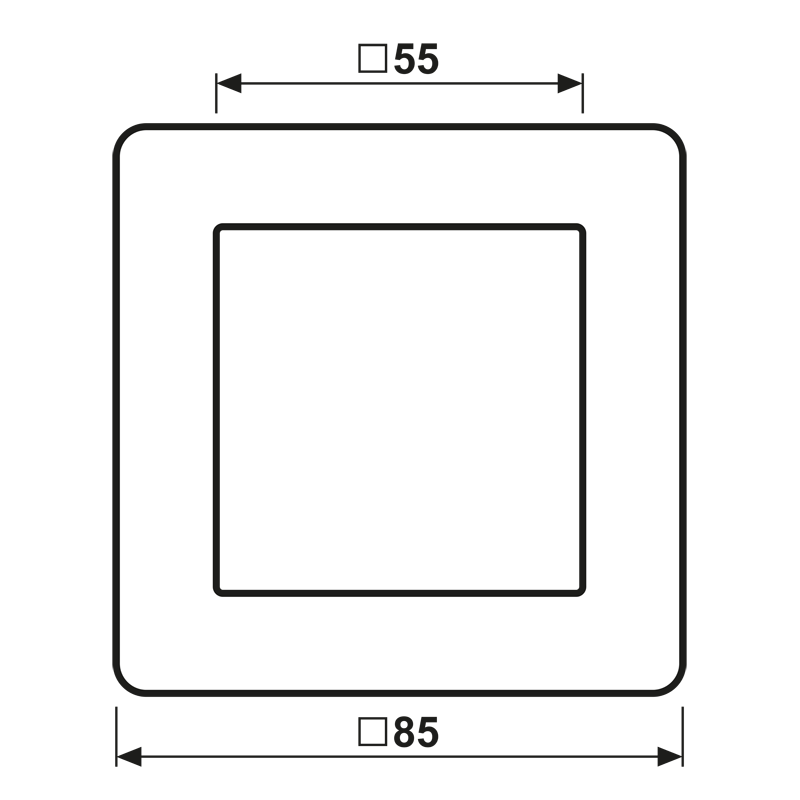 1fach-Rahmen auch für British-Standard-Installationen geeignet (Tragring 80 x 80)