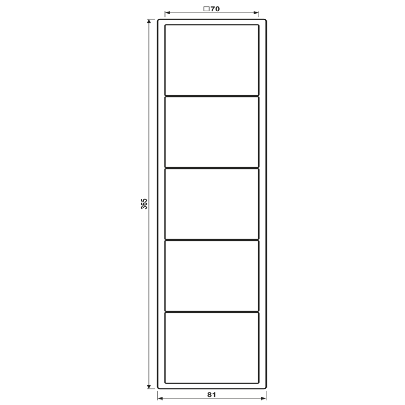 Rahmen 5fach, alpinweiß für waagerechte und senkrechte Kombination Mit Dichtungsflansch Art.-Nr.: 551 WU ist der Schutzgrad IP44 gewährleistet. Material: Duroplast antimikrobiell Maße (B x H): 81 x 365 mm