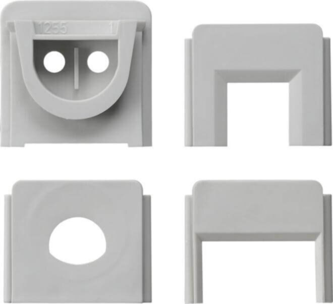 Set mit Adaptern zur Leitungseinführung Grau Set Komplett mit Leitungseinführungen für:{ul}{li}Kanal 15 x 15 mm{/li}{li}Kanal 15 x 30 mm{/li}{li}Rohr bis Ø 20 mm{/li}{li}2fach (Zwillingseinführung){/li}{/ul}