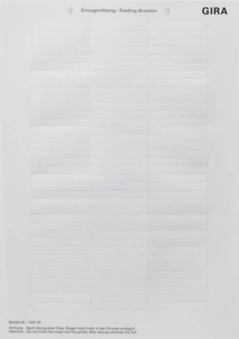 Beschriftungsbögen 51,2 x 7 mm - Vorgestanzte Beschriftungsbögen aus einer PET-Folie im DIN A4-Format. Beschriftungsbögen können nur mit einem Laserdrucker bedruckt werden. Um Ihren Druck zu gestalten, geben Sie auf der folgenden Website die Gira Artikelnummer Ihrer Textetiketten ein. https://www.avery-zweckform.com/software/avery-design-print