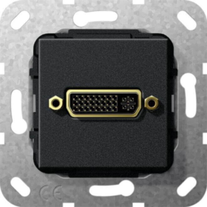 Einsatz DVI (24 5) Kupplung Schwarz matt Hinweise : Nur für Schraubbefestigungestigung. Achtung! Bauraum für Stecker und Biegeradien beachten. Bei Einsätzen mit Kupplungen beachten: Nicht für Kanalinstallation und Standardgerätedose geeignet. Anschluss mit Winkelsteckern empfohlen. Bei Verwendung dieser Steckvorrichtungen besteht für angeschlossene Geräte eine Leistungsbegrenzung von 15 Watt. Installationsempfehlung: Kaiser Elektronic-Dosen Unterputz-Montage: Kaiser Best.-Nr.: 1068-02 Hohlwandmontage: Kaiser Best.-Nr.: 9062-94 Betoninstallation: Kaiser Best.-Nr.: 1268-40