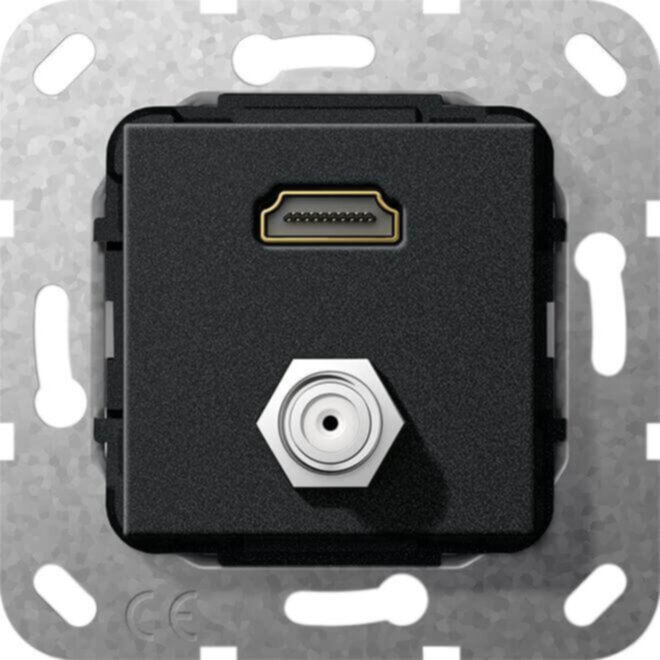 Einsatz HDMI(tm) 2.0a HDR und SAT-F-Buchse Kupplung Schwarz matt Hinweise : Nur für Schraubbefestigungestigung. Achtung! Bauraum für Stecker und Biegeradien beachten. Bei Einsätzen mit Kupplungen beachten: Nicht für Kanalinstallation und Standardgerätedose geeignet. Anschluss mit Winkelsteckern empfohlen. Bei Verwendung dieser Steckvorrichtungen besteht für angeschlossene Geräte eine Leistungsbegrenzung von 15 Watt. Installationsempfehlung: Kaiser Elektronic-Dosen Unterputz-Montage: Kaiser Best.-Nr.: 1068-02 Hohlwandmontage: Kaiser Best.-Nr.: 9062-94 Betoninstallation: Kaiser Best.-Nr.: 1268-40
