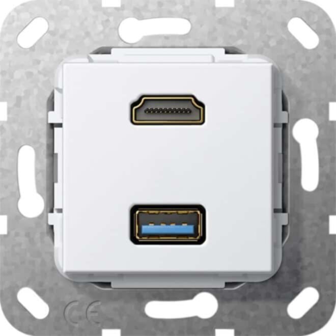 Einsatz HDMI(tm) 2.0a HDR und USB 3.0 Typ A Kupplung Reinweiß glänzend Hinweise : Nur für Schraubbefestigungestigung. Achtung! Bauraum für Stecker und Biegeradien beachten. Bei Einsätzen mit Kupplungen beachten: Nicht für Kanalinstallation und Standardgerätedose geeignet. Anschluss mit Winkelsteckern empfohlen. Bei Verwendung dieser Steckvorrichtungen besteht für angeschlossene Geräte eine Leistungsbegrenzung von 15 Watt. Installationsempfehlung: Kaiser Elektronic-Dosen Unterputz-Montage: Kaiser Best.-Nr.: 1068-02 Hohlwandmontage: Kaiser Best.-Nr.: 9062-94 Betoninstallation: Kaiser Best.-Nr.: 1268-40