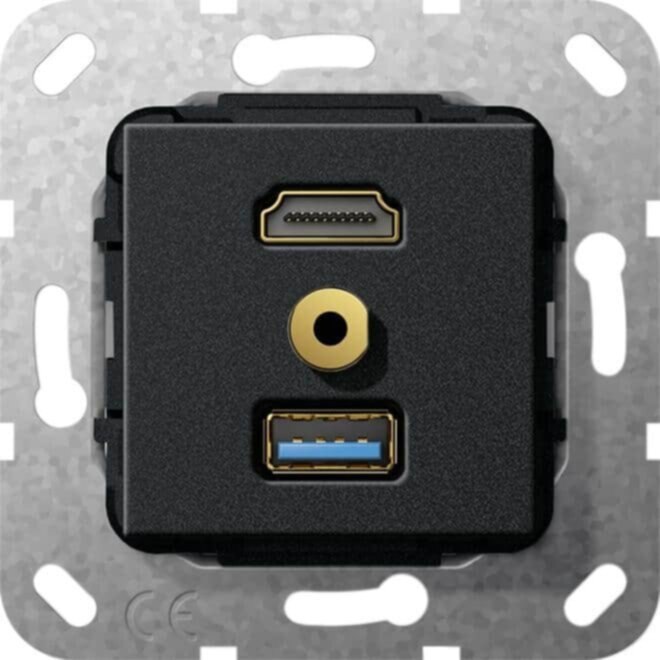 Einsatz HDMI(tm) 2.0a HDR, USB 3.0 Typ A und Miniklinke 3,5 mm Kabelpeitsche Schwarz matt Hinweise : Nur für Schraubbefestigungestigung. Achtung! Bauraum für Stecker und Biegeradien beachten. Bei Einsätzen mit Kupplungen beachten: Nicht für Kanalinstallation und Standardgerätedose geeignet. Anschluss mit Winkelsteckern empfohlen. Bei Verwendung dieser Steckvorrichtungen besteht für angeschlossene Geräte eine Leistungsbegrenzung von 15 Watt. Installationsempfehlung: Kaiser Elektronic-Dosen Unterputz-Montage: Kaiser Best.-Nr.: 1068-02 Hohlwandmontage: Kaiser Best.-Nr.: 9062-94 Betoninstallation: Kaiser Best.-Nr.: 1268-40