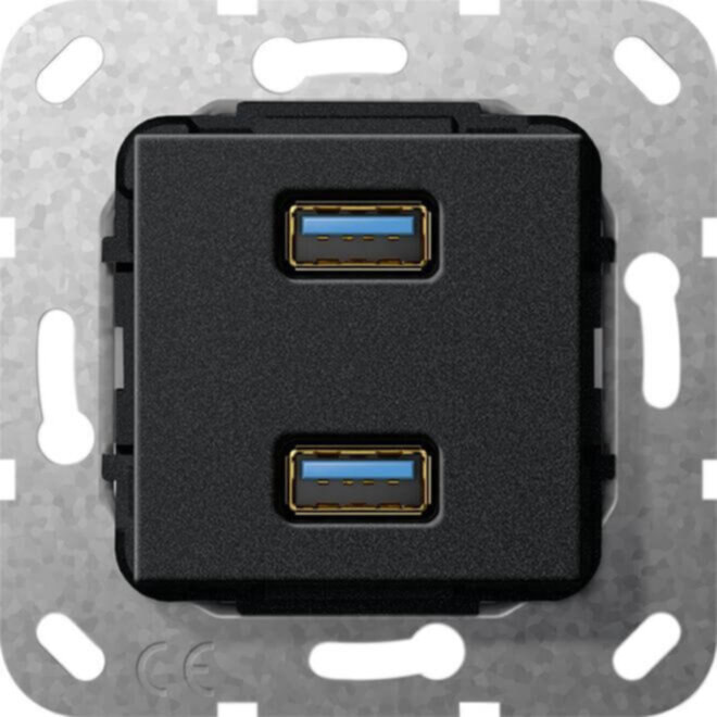 Gira USB 3.0 A 2fach schwarz matt Kabelpeitsche 568510