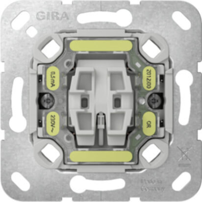 Einsatz Wipp-Kontrollschalter 10 AX 250 V~ mit orangem LED-Beleuchtungselement 230 V~ Universal-Aus-Wechselschalter Auch beleuchtbar anzuschließen. Oranges LED-Beleuchtungselement 230 V~ 0,5 mA ist im Lieferumfang enthalten.