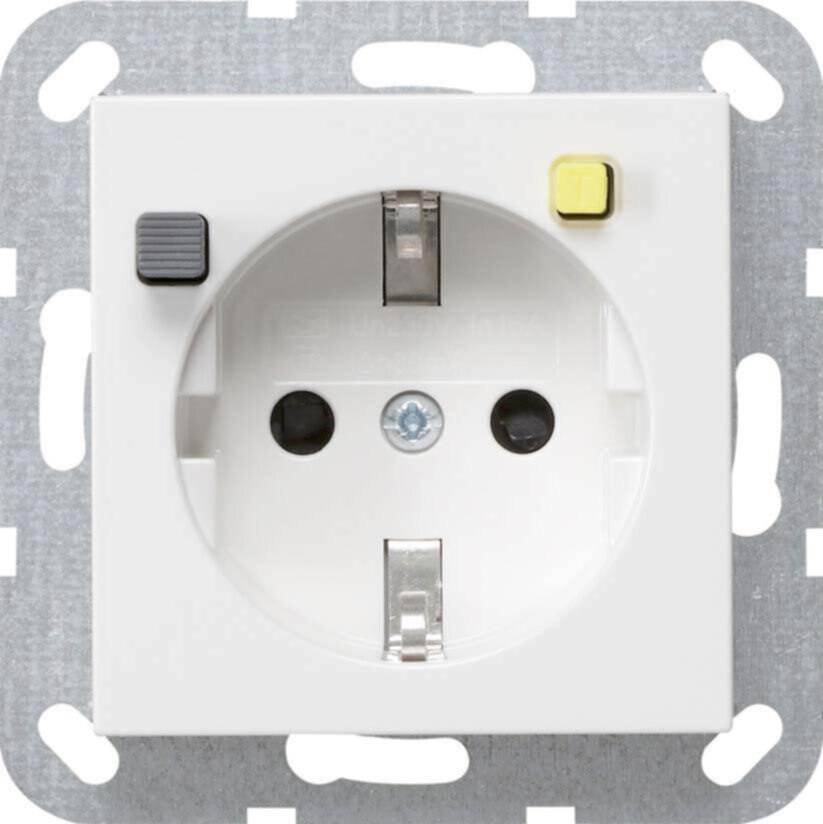 Gira FI-Schutzsteckdose 30 mA mit Shutter in der Farbe reinweiß glänzend