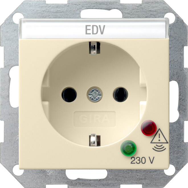 Schutzkontakt-Steckdose 16 A 250 V~ mit Überspannungsschutz und Beschriftungsfeld Cremeweiß glänzend - Schützt Elektro- und Elektronikgeräte vor transienten Überspannungen. - Mit akustischem und optischem Signal. - Mit Schraubklemmen. Feinschutz Typ 3 für Elektro- und Elektronikgeräte vor transienten Überspannungen nach EN 61643-11. Einsatz nur in Kombination mit Grobschutz Typ 1 und Mittelschutz Typ 2. Einsatz in TN-, TT-, und IT-Netzen. Beschriftungsschild EDV ist beigefügt.