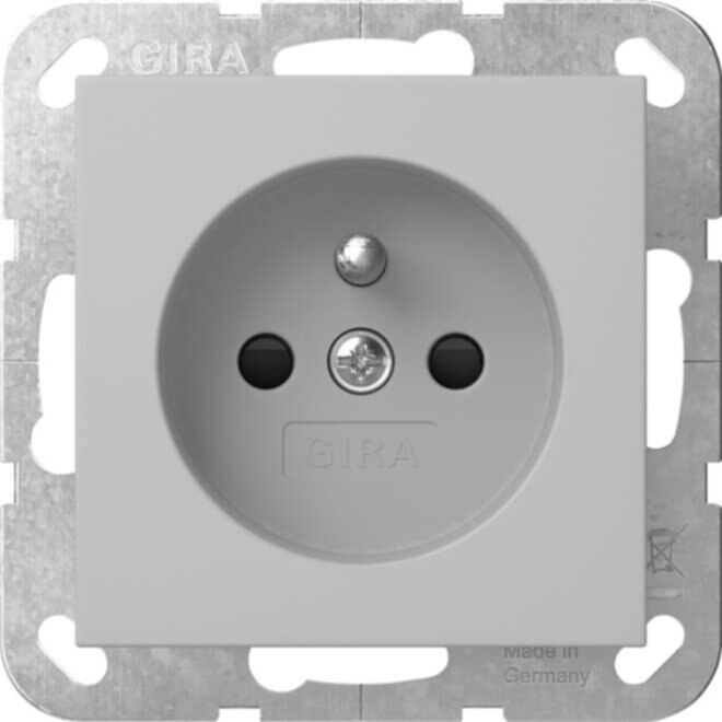 Steckdose mit Erdungsstift 16 A 250 V~ und erhöhtem Berührungsschutz (Safety Plus) Grau matt (lackiert) System 55 - Mit Steckklemmen. - Tragring ist in Verbindung mit den Befestigungskrallen und Krallenschrauben geerdet. - Schnellbefestigung (ca. 3,5 Umdrehungen pro Befestigungskralle). - Eingehauste Spreizkrallen. - Einfachere Krallenbefestigung durch robusten Schraubenkopfantrieb PZ1 / Schlitz / PH. - Vereinfachte Installation durch patentierte Anordnung der großen Schlüssellochprofile mittels Dosenschrauben. - Geringe Einbautiefe. - Große, ergonomisch geformte Lösehebel. - Stabiler Erdungsbügel mit massiven Erdungsfingern. - Stabiler und korrosionsbeständiger Stahltragring. - Bruchsicherer Thermoplastsockel. Nach NF C 61-314:2017 zugelassen. Nach NBN C 61-112-1:2017 zugelassen. Erhöhter Berührungsschutz (Safety Plus) gemäß DIN VDE 0620-1.