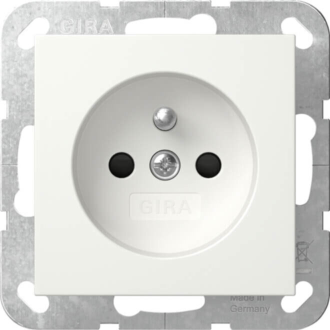 Steckdose mit Erdungsstift 16 A 250 V~ und erhöhtem Berührungsschutz (Safety Plus) Reinweiß seidenmatt System 55 - Mit Steckklemmen. - Tragring ist in Verbindung mit den Befestigungskrallen und Krallenschrauben geerdet. - Schnellbefestigung (ca. 3,5 Umdrehungen pro Befestigungskralle). - Eingehauste Spreizkrallen. - Einfachere Krallenbefestigung durch robusten Schraubenkopfantrieb PZ1 / Schlitz / PH. - Vereinfachte Installation durch patentierte Anordnung der großen Schlüssellochprofile mittels Dosenschrauben. - Geringe Einbautiefe. - Große, ergonomisch geformte Lösehebel. - Stabiler Erdungsbügel mit massiven Erdungsfingern. - Stabiler und korrosionsbeständiger Stahltragring. - Bruchsicherer Thermoplastsockel. Nach NF C 61-314:2017 zugelassen. Nach NBN C 61-112-1:2017 zugelassen. Erhöhter Berührungsschutz (Safety Plus) gemäß DIN VDE 0620-1.