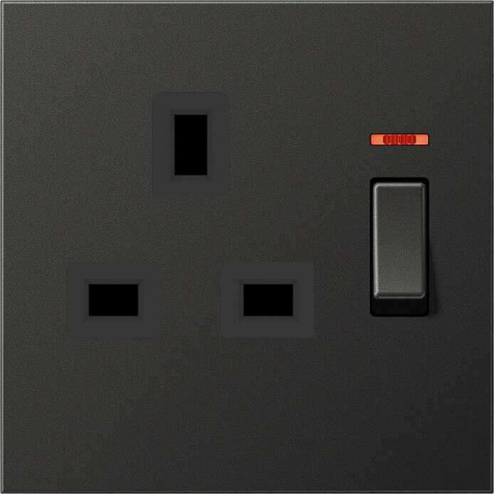 2-pol. + E, mit Kontrollschalter 2-pol. mit integriertem erhöhten Berührungsschutz British Standard 1363:1995 mit Schraubklemmen für starre und flexible Leiter bis 4 mm2 nach BS 1363-1 Material: Aluminium lackiert