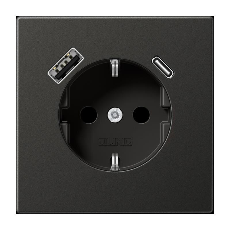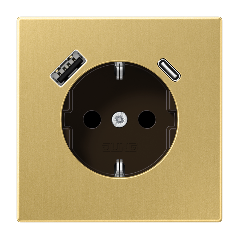 mit integriertem erhöhten Berührungsschutz (Safety Plus) mit 1 USB-Buchse Typ A und 1 USB-Buchse Typ C mit Federklemmen für starre und unbehandelte flexible Leiter bis 2,5 mm2 Verbindungsklemmen nach DIN VDE 0620 Montage in Gerätedose mit Abmessungen nach DIN 49073 Tiefe der Gerätedose (Innenmaß): min. 57 mm Material: Aluminium lackiert