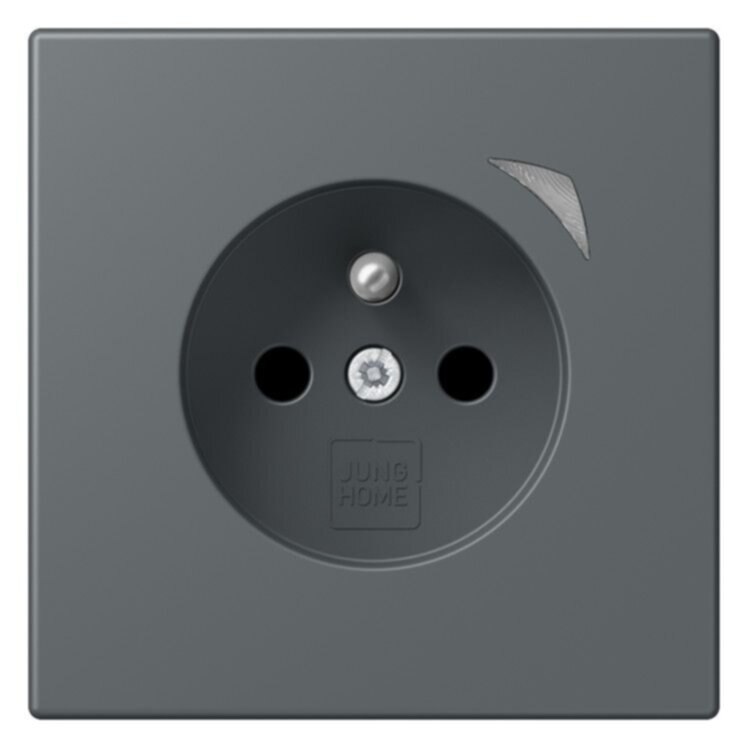 JUNG HOME Steckdose, französisch/belgisches System, gris foncé 312-polig mit Erdungsstift, 16 A 250 V ~CEE 7/5mit integriertem erhöhten Berührungsschutz (Safety Plus)mit Schraubklemmen für starre und flexible Leiter bis 2,5 mm2Verbindungsklemmen nach DIN VDE 0620Tragring, Krallen und Krallenschrauben sind über eine Erdungsschiene in die Schutzmaßnahme eingebunden.Bestimmungsgemäßer GebrauchManuelles oder automatisches Schalten von Beleuchtung und haushaltsüblichen GerätenDrahtlose Verknüpfung mit Geräten des JUNG HOME SystemsEinsatz im trockenen InnenbereichMontage in Gerätedose mit Abmessungen nach DIN 49073Tiefe der Gerätedose (Innenmaß): min. 50 mm ProdukteigenschaftenInbetriebnahme und Bedienung über JUNG HOME App mit mobilem Endgerät (Smartphone oder Tablet) über Bluetooth®Taste zum SchaltenMehrfarbige Statusanzeige mit optionalem NachtmodusSperren der lokalen BedienungBis zu 16 ZeitprogrammeEinbindung der Last in Bereiche (Gruppen), Zentralfunktionen und SzenenAutomatikfunktionen aktivieren/deaktivieren über JUNG HOME AppAutomatische Datum- und Uhrzeitaktualisierung bei Verbindung mit SmartphoneIntegrierter Schaltaktor mit 16 ABluetooth® SIG Mesh für voll verschlüsselte drahtlose Kommunikation und RepeaterfunktionUpdatefähig über JUNG HOME App Zukünftig per Update verfügbar:(Hinweise zu Updates und Terminen finden sie unter jung.group/junghome)Sperr- und Zwangsführung: Dauer-EIN/AUS oder für feste Zeit EIN/AUSZeitprogramme mit Sonnenauf- bzw. Sonnenuntergang (Astrotimer)Zeitprogramme mit ZufallszeitpunktEin-/ AusschaltverzögerungMaterial: Thermoplast lackiertMaße (B x H): 70 x 70 mm