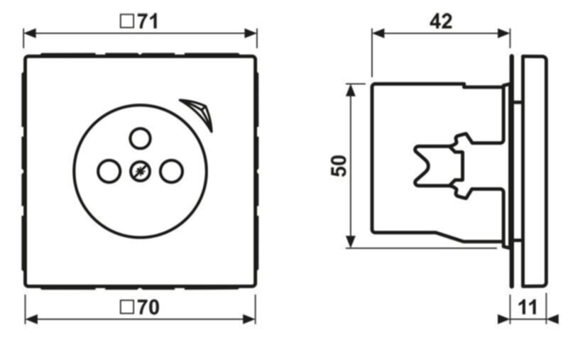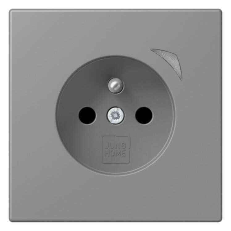 JUNG HOME Steckdose, französisch/belgisches System, gris 312-polig mit Erdungsstift, 16 A 250 V ~CEE 7/5mit integriertem erhöhten Berührungsschutz (Safety Plus)mit Schraubklemmen für starre und flexible Leiter bis 2,5 mm2Verbindungsklemmen nach DIN VDE 0620Tragring, Krallen und Krallenschrauben sind über eine Erdungsschiene in die Schutzmaßnahme eingebunden.Bestimmungsgemäßer GebrauchManuelles oder automatisches Schalten von Beleuchtung und haushaltsüblichen GerätenDrahtlose Verknüpfung mit Geräten des JUNG HOME SystemsEinsatz im trockenen InnenbereichMontage in Gerätedose mit Abmessungen nach DIN 49073Tiefe der Gerätedose (Innenmaß): min. 50 mm ProdukteigenschaftenInbetriebnahme und Bedienung über JUNG HOME App mit mobilem Endgerät (Smartphone oder Tablet) über Bluetooth®Taste zum SchaltenMehrfarbige Statusanzeige mit optionalem NachtmodusSperren der lokalen BedienungBis zu 16 ZeitprogrammeEinbindung der Last in Bereiche (Gruppen), Zentralfunktionen und SzenenAutomatikfunktionen aktivieren/deaktivieren über JUNG HOME AppAutomatische Datum- und Uhrzeitaktualisierung bei Verbindung mit SmartphoneIntegrierter Schaltaktor mit 16 ABluetooth® SIG Mesh für voll verschlüsselte drahtlose Kommunikation und RepeaterfunktionUpdatefähig über JUNG HOME App Zukünftig per Update verfügbar:(Hinweise zu Updates und Terminen finden sie unter jung.group/junghome)Sperr- und Zwangsführung: Dauer-EIN/AUS oder für feste Zeit EIN/AUSZeitprogramme mit Sonnenauf- bzw. Sonnenuntergang (Astrotimer)Zeitprogramme mit ZufallszeitpunktEin-/ AusschaltverzögerungMaterial: Thermoplast lackiertMaße (B x H): 70 x 70 mm