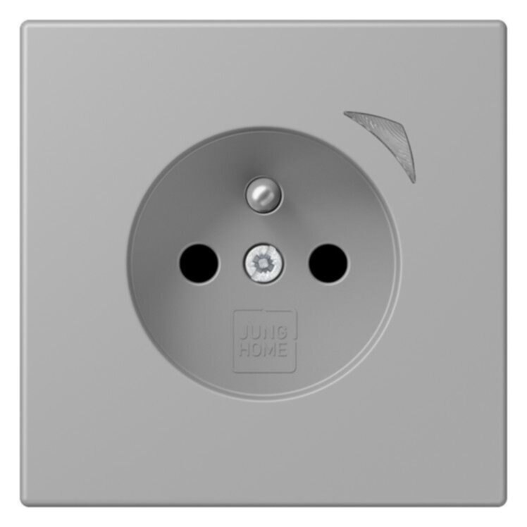 JUNG HOME Steckdose, französisch/belgisches System, gris moyen2-polig mit Erdungsstift, 16 A 250 V ~CEE 7/5mit integriertem erhöhten Berührungsschutz (Safety Plus)mit Schraubklemmen für starre und flexible Leiter bis 2,5 mm2Verbindungsklemmen nach DIN VDE 0620Tragring, Krallen und Krallenschrauben sind über eine Erdungsschiene in die Schutzmaßnahme eingebunden.Bestimmungsgemäßer GebrauchManuelles oder automatisches Schalten von Beleuchtung und haushaltsüblichen GerätenDrahtlose Verknüpfung mit Geräten des JUNG HOME SystemsEinsatz im trockenen InnenbereichMontage in Gerätedose mit Abmessungen nach DIN 49073Tiefe der Gerätedose (Innenmaß): min. 50 mm ProdukteigenschaftenInbetriebnahme und Bedienung über JUNG HOME App mit mobilem Endgerät (Smartphone oder Tablet) über Bluetooth®Taste zum SchaltenMehrfarbige Statusanzeige mit optionalem NachtmodusSperren der lokalen BedienungBis zu 16 ZeitprogrammeEinbindung der Last in Bereiche (Gruppen), Zentralfunktionen und SzenenAutomatikfunktionen aktivieren/deaktivieren über JUNG HOME AppAutomatische Datum- und Uhrzeitaktualisierung bei Verbindung mit SmartphoneIntegrierter Schaltaktor mit 16 ABluetooth® SIG Mesh für voll verschlüsselte drahtlose Kommunikation und RepeaterfunktionUpdatefähig über JUNG HOME App Zukünftig per Update verfügbar:(Hinweise zu Updates und Terminen finden sie unter jung.group/junghome)Sperr- und Zwangsführung: Dauer-EIN/AUS oder für feste Zeit EIN/AUSZeitprogramme mit Sonnenauf- bzw. Sonnenuntergang (Astrotimer)Zeitprogramme mit ZufallszeitpunktEin-/ AusschaltverzögerungMaterial: Thermoplast lackiertMaße (B x H): 70 x 70 mm