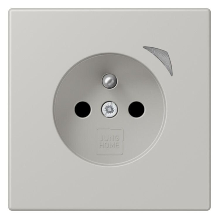 JUNG HOME Steckdose, französisch/belgisches System, gris clair 312-polig mit Erdungsstift, 16 A 250 V ~CEE 7/5mit integriertem erhöhten Berührungsschutz (Safety Plus)mit Schraubklemmen für starre und flexible Leiter bis 2,5 mm2Verbindungsklemmen nach DIN VDE 0620Tragring, Krallen und Krallenschrauben sind über eine Erdungsschiene in die Schutzmaßnahme eingebunden.Bestimmungsgemäßer GebrauchManuelles oder automatisches Schalten von Beleuchtung und haushaltsüblichen GerätenDrahtlose Verknüpfung mit Geräten des JUNG HOME SystemsEinsatz im trockenen InnenbereichMontage in Gerätedose mit Abmessungen nach DIN 49073Tiefe der Gerätedose (Innenmaß): min. 50 mm ProdukteigenschaftenInbetriebnahme und Bedienung über JUNG HOME App mit mobilem Endgerät (Smartphone oder Tablet) über Bluetooth®Taste zum SchaltenMehrfarbige Statusanzeige mit optionalem NachtmodusSperren der lokalen BedienungBis zu 16 ZeitprogrammeEinbindung der Last in Bereiche (Gruppen), Zentralfunktionen und SzenenAutomatikfunktionen aktivieren/deaktivieren über JUNG HOME AppAutomatische Datum- und Uhrzeitaktualisierung bei Verbindung mit SmartphoneIntegrierter Schaltaktor mit 16 ABluetooth® SIG Mesh für voll verschlüsselte drahtlose Kommunikation und RepeaterfunktionUpdatefähig über JUNG HOME App Zukünftig per Update verfügbar:(Hinweise zu Updates und Terminen finden sie unter jung.group/junghome)Sperr- und Zwangsführung: Dauer-EIN/AUS oder für feste Zeit EIN/AUSZeitprogramme mit Sonnenauf- bzw. Sonnenuntergang (Astrotimer)Zeitprogramme mit ZufallszeitpunktEin-/ AusschaltverzögerungMaterial: Thermoplast lackiertMaße (B x H): 70 x 70 mm