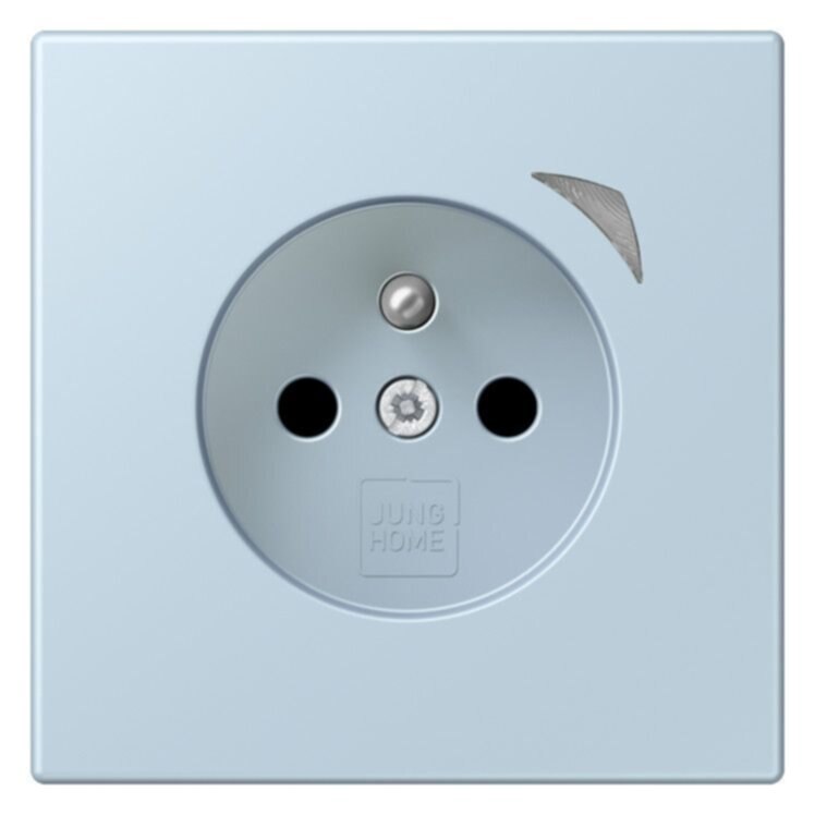 JUNG HOME Steckdose, französisch/belgisches System, outremerclair2-polig mit Erdungsstift, 16 A 250 V ~CEE 7/5mit integriertem erhöhten Berührungsschutz (Safety Plus)mit Schraubklemmen für starre und flexible Leiter bis 2,5 mm2Verbindungsklemmen nach DIN VDE 0620Tragring, Krallen und Krallenschrauben sind über eine Erdungsschiene in die Schutzmaßnahme eingebunden.Bestimmungsgemäßer GebrauchManuelles oder automatisches Schalten von Beleuchtung und haushaltsüblichen GerätenDrahtlose Verknüpfung mit Geräten des JUNG HOME SystemsEinsatz im trockenen InnenbereichMontage in Gerätedose mit Abmessungen nach DIN 49073Tiefe der Gerätedose (Innenmaß): min. 50 mm ProdukteigenschaftenInbetriebnahme und Bedienung über JUNG HOME App mit mobilem Endgerät (Smartphone oder Tablet) über Bluetooth®Taste zum SchaltenMehrfarbige Statusanzeige mit optionalem NachtmodusSperren der lokalen BedienungBis zu 16 ZeitprogrammeEinbindung der Last in Bereiche (Gruppen), Zentralfunktionen und SzenenAutomatikfunktionen aktivieren/deaktivieren über JUNG HOME AppAutomatische Datum- und Uhrzeitaktualisierung bei Verbindung mit SmartphoneIntegrierter Schaltaktor mit 16 ABluetooth® SIG Mesh für voll verschlüsselte drahtlose Kommunikation und RepeaterfunktionUpdatefähig über JUNG HOME App Zukünftig per Update verfügbar:(Hinweise zu Updates und Terminen finden sie unter jung.group/junghome)Sperr- und Zwangsführung: Dauer-EIN/AUS oder für feste Zeit EIN/AUSZeitprogramme mit Sonnenauf- bzw. Sonnenuntergang (Astrotimer)Zeitprogramme mit ZufallszeitpunktEin-/ AusschaltverzögerungMaterial: Thermoplast lackiertMaße (B x H): 70 x 70 mm