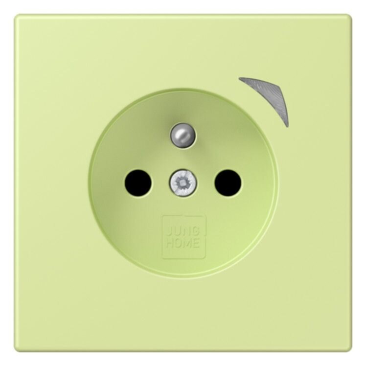 JUNG HOME Steckdose, französisch/belgisches System, vert jaune clair2-polig mit Erdungsstift, 16 A 250 V ~CEE 7/5mit integriertem erhöhten Berührungsschutz (Safety Plus)mit Schraubklemmen für starre und flexible Leiter bis 2,5 mm2Verbindungsklemmen nach DIN VDE 0620Tragring, Krallen und Krallenschrauben sind über eine Erdungsschiene in die Schutzmaßnahme eingebunden.Bestimmungsgemäßer GebrauchManuelles oder automatisches Schalten von Beleuchtung und haushaltsüblichen GerätenDrahtlose Verknüpfung mit Geräten des JUNG HOME SystemsEinsatz im trockenen InnenbereichMontage in Gerätedose mit Abmessungen nach DIN 49073Tiefe der Gerätedose (Innenmaß): min. 50 mm ProdukteigenschaftenInbetriebnahme und Bedienung über JUNG HOME App mit mobilem Endgerät (Smartphone oder Tablet) über Bluetooth®Taste zum SchaltenMehrfarbige Statusanzeige mit optionalem NachtmodusSperren der lokalen BedienungBis zu 16 ZeitprogrammeEinbindung der Last in Bereiche (Gruppen), Zentralfunktionen und SzenenAutomatikfunktionen aktivieren/deaktivieren über JUNG HOME AppAutomatische Datum- und Uhrzeitaktualisierung bei Verbindung mit SmartphoneIntegrierter Schaltaktor mit 16 ABluetooth® SIG Mesh für voll verschlüsselte drahtlose Kommunikation und RepeaterfunktionUpdatefähig über JUNG HOME App Zukünftig per Update verfügbar:(Hinweise zu Updates und Terminen finden sie unter jung.group/junghome)Sperr- und Zwangsführung: Dauer-EIN/AUS oder für feste Zeit EIN/AUSZeitprogramme mit Sonnenauf- bzw. Sonnenuntergang (Astrotimer)Zeitprogramme mit ZufallszeitpunktEin-/ AusschaltverzögerungMaterial: Thermoplast lackiertMaße (B x H): 70 x 70 mm