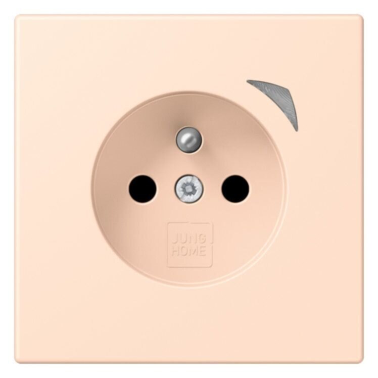 JUNG HOME Steckdose, französisch/belgisches System, rose pâle2-polig mit Erdungsstift, 16 A 250 V ~CEE 7/5mit integriertem erhöhten Berührungsschutz (Safety Plus)mit Schraubklemmen für starre und flexible Leiter bis 2,5 mm2Verbindungsklemmen nach DIN VDE 0620Tragring, Krallen und Krallenschrauben sind über eine Erdungsschiene in die Schutzmaßnahme eingebunden.Bestimmungsgemäßer GebrauchManuelles oder automatisches Schalten von Beleuchtung und haushaltsüblichen GerätenDrahtlose Verknüpfung mit Geräten des JUNG HOME SystemsEinsatz im trockenen InnenbereichMontage in Gerätedose mit Abmessungen nach DIN 49073Tiefe der Gerätedose (Innenmaß): min. 50 mm ProdukteigenschaftenInbetriebnahme und Bedienung über JUNG HOME App mit mobilem Endgerät (Smartphone oder Tablet) über Bluetooth®Taste zum SchaltenMehrfarbige Statusanzeige mit optionalem NachtmodusSperren der lokalen BedienungBis zu 16 ZeitprogrammeEinbindung der Last in Bereiche (Gruppen), Zentralfunktionen und SzenenAutomatikfunktionen aktivieren/deaktivieren über JUNG HOME AppAutomatische Datum- und Uhrzeitaktualisierung bei Verbindung mit SmartphoneIntegrierter Schaltaktor mit 16 ABluetooth® SIG Mesh für voll verschlüsselte drahtlose Kommunikation und RepeaterfunktionUpdatefähig über JUNG HOME App Zukünftig per Update verfügbar:(Hinweise zu Updates und Terminen finden sie unter jung.group/junghome)Sperr- und Zwangsführung: Dauer-EIN/AUS oder für feste Zeit EIN/AUSZeitprogramme mit Sonnenauf- bzw. Sonnenuntergang (Astrotimer)Zeitprogramme mit ZufallszeitpunktEin-/ AusschaltverzögerungMaterial: Thermoplast lackiertMaße (B x H): 70 x 70 mm
