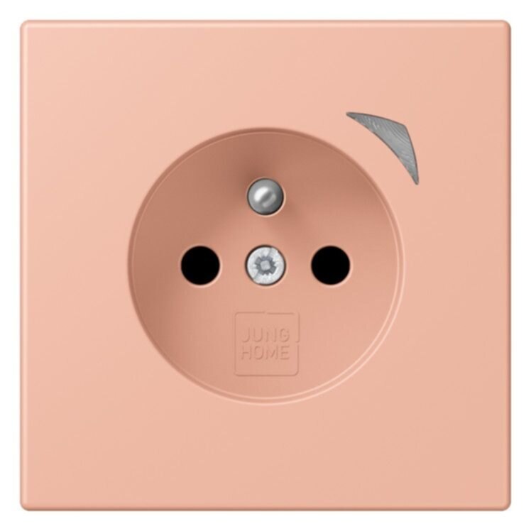 JUNG HOME Steckdose, französisch/belgisches System, rose clair2-polig mit Erdungsstift, 16 A 250 V ~CEE 7/5mit integriertem erhöhten Berührungsschutz (Safety Plus)mit Schraubklemmen für starre und flexible Leiter bis 2,5 mm2Verbindungsklemmen nach DIN VDE 0620Tragring, Krallen und Krallenschrauben sind über eine Erdungsschiene in die Schutzmaßnahme eingebunden.Bestimmungsgemäßer GebrauchManuelles oder automatisches Schalten von Beleuchtung und haushaltsüblichen GerätenDrahtlose Verknüpfung mit Geräten des JUNG HOME SystemsEinsatz im trockenen InnenbereichMontage in Gerätedose mit Abmessungen nach DIN 49073Tiefe der Gerätedose (Innenmaß): min. 50 mm ProdukteigenschaftenInbetriebnahme und Bedienung über JUNG HOME App mit mobilem Endgerät (Smartphone oder Tablet) über Bluetooth®Taste zum SchaltenMehrfarbige Statusanzeige mit optionalem NachtmodusSperren der lokalen BedienungBis zu 16 ZeitprogrammeEinbindung der Last in Bereiche (Gruppen), Zentralfunktionen und SzenenAutomatikfunktionen aktivieren/deaktivieren über JUNG HOME AppAutomatische Datum- und Uhrzeitaktualisierung bei Verbindung mit SmartphoneIntegrierter Schaltaktor mit 16 ABluetooth® SIG Mesh für voll verschlüsselte drahtlose Kommunikation und RepeaterfunktionUpdatefähig über JUNG HOME App Zukünftig per Update verfügbar:(Hinweise zu Updates und Terminen finden sie unter jung.group/junghome)Sperr- und Zwangsführung: Dauer-EIN/AUS oder für feste Zeit EIN/AUSZeitprogramme mit Sonnenauf- bzw. Sonnenuntergang (Astrotimer)Zeitprogramme mit ZufallszeitpunktEin-/ AusschaltverzögerungMaterial: Thermoplast lackiertMaße (B x H): 70 x 70 mm