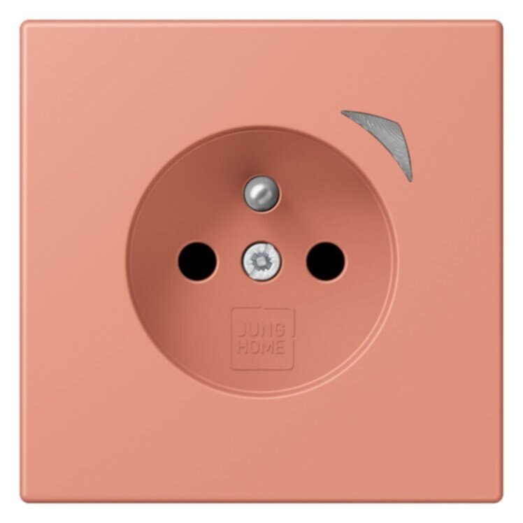 JUNG HOME Steckdose, französisch/belgisches System, l'ocre rouge moyen2-polig mit Erdungsstift, 16 A 250 V ~CEE 7/5mit integriertem erhöhten Berührungsschutz (Safety Plus)mit Schraubklemmen für starre und flexible Leiter bis 2,5 mm2Verbindungsklemmen nach DIN VDE 0620Tragring, Krallen und Krallenschrauben sind über eine Erdungsschiene in die Schutzmaßnahme eingebunden.Bestimmungsgemäßer GebrauchManuelles oder automatisches Schalten von Beleuchtung und haushaltsüblichen GerätenDrahtlose Verknüpfung mit Geräten des JUNG HOME SystemsEinsatz im trockenen InnenbereichMontage in Gerätedose mit Abmessungen nach DIN 49073Tiefe der Gerätedose (Innenmaß): min. 50 mm ProdukteigenschaftenInbetriebnahme und Bedienung über JUNG HOME App mit mobilem Endgerät (Smartphone oder Tablet) über Bluetooth®Taste zum SchaltenMehrfarbige Statusanzeige mit optionalem NachtmodusSperren der lokalen BedienungBis zu 16 ZeitprogrammeEinbindung der Last in Bereiche (Gruppen), Zentralfunktionen und SzenenAutomatikfunktionen aktivieren/deaktivieren über JUNG HOME AppAutomatische Datum- und Uhrzeitaktualisierung bei Verbindung mit SmartphoneIntegrierter Schaltaktor mit 16 ABluetooth® SIG Mesh für voll verschlüsselte drahtlose Kommunikation und RepeaterfunktionUpdatefähig über JUNG HOME App Zukünftig per Update verfügbar:(Hinweise zu Updates und Terminen finden sie unter jung.group/junghome)Sperr- und Zwangsführung: Dauer-EIN/AUS oder für feste Zeit EIN/AUSZeitprogramme mit Sonnenauf- bzw. Sonnenuntergang (Astrotimer)Zeitprogramme mit ZufallszeitpunktEin-/ AusschaltverzögerungMaterial: Thermoplast lackiertMaße (B x H): 70 x 70 mm