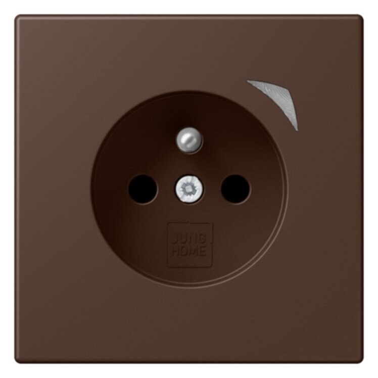 JUNG HOME Steckdose, französisch/belgisches System, terre d'ombre brûlée 312-polig mit Erdungsstift, 16 A 250 V ~CEE 7/5mit integriertem erhöhten Berührungsschutz (Safety Plus)mit Schraubklemmen für starre und flexible Leiter bis 2,5 mm2Verbindungsklemmen nach DIN VDE 0620Tragring, Krallen und Krallenschrauben sind über eine Erdungsschiene in die Schutzmaßnahme eingebunden.Bestimmungsgemäßer GebrauchManuelles oder automatisches Schalten von Beleuchtung und haushaltsüblichen GerätenDrahtlose Verknüpfung mit Geräten des JUNG HOME SystemsEinsatz im trockenen InnenbereichMontage in Gerätedose mit Abmessungen nach DIN 49073Tiefe der Gerätedose (Innenmaß): min. 50 mm ProdukteigenschaftenInbetriebnahme und Bedienung über JUNG HOME App mit mobilem Endgerät (Smartphone oder Tablet) über Bluetooth®Taste zum SchaltenMehrfarbige Statusanzeige mit optionalem NachtmodusSperren der lokalen BedienungBis zu 16 ZeitprogrammeEinbindung der Last in Bereiche (Gruppen), Zentralfunktionen und SzenenAutomatikfunktionen aktivieren/deaktivieren über JUNG HOME AppAutomatische Datum- und Uhrzeitaktualisierung bei Verbindung mit SmartphoneIntegrierter Schaltaktor mit 16 ABluetooth® SIG Mesh für voll verschlüsselte drahtlose Kommunikation und RepeaterfunktionUpdatefähig über JUNG HOME App Zukünftig per Update verfügbar:(Hinweise zu Updates und Terminen finden sie unter jung.group/junghome)Sperr- und Zwangsführung: Dauer-EIN/AUS oder für feste Zeit EIN/AUSZeitprogramme mit Sonnenauf- bzw. Sonnenuntergang (Astrotimer)Zeitprogramme mit ZufallszeitpunktEin-/ AusschaltverzögerungMaterial: Thermoplast lackiertMaße (B x H): 70 x 70 mm