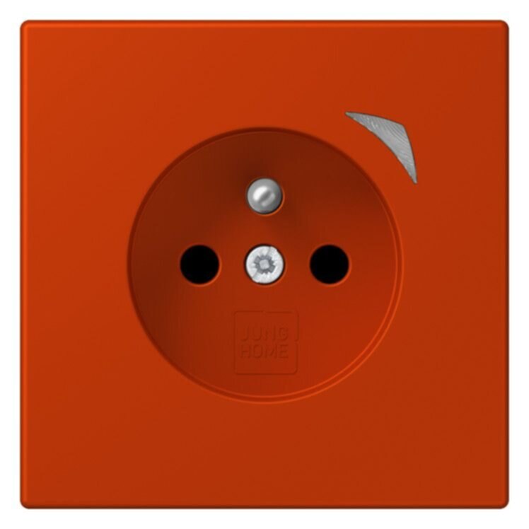 JUNG HOME Steckdose, französisch/belgisches System, rouge vermillon 592-polig mit Erdungsstift, 16 A 250 V ~CEE 7/5mit integriertem erhöhten Berührungsschutz (Safety Plus)mit Schraubklemmen für starre und flexible Leiter bis 2,5 mm2Verbindungsklemmen nach DIN VDE 0620Tragring, Krallen und Krallenschrauben sind über eine Erdungsschiene in die Schutzmaßnahme eingebunden.Bestimmungsgemäßer GebrauchManuelles oder automatisches Schalten von Beleuchtung und haushaltsüblichen GerätenDrahtlose Verknüpfung mit Geräten des JUNG HOME SystemsEinsatz im trockenen InnenbereichMontage in Gerätedose mit Abmessungen nach DIN 49073Tiefe der Gerätedose (Innenmaß): min. 50 mm ProdukteigenschaftenInbetriebnahme und Bedienung über JUNG HOME App mit mobilem Endgerät (Smartphone oder Tablet) über Bluetooth®Taste zum SchaltenMehrfarbige Statusanzeige mit optionalem NachtmodusSperren der lokalen BedienungBis zu 16 ZeitprogrammeEinbindung der Last in Bereiche (Gruppen), Zentralfunktionen und SzenenAutomatikfunktionen aktivieren/deaktivieren über JUNG HOME AppAutomatische Datum- und Uhrzeitaktualisierung bei Verbindung mit SmartphoneIntegrierter Schaltaktor mit 16 ABluetooth® SIG Mesh für voll verschlüsselte drahtlose Kommunikation und RepeaterfunktionUpdatefähig über JUNG HOME App Zukünftig per Update verfügbar:(Hinweise zu Updates und Terminen finden sie unter jung.group/junghome)Sperr- und Zwangsführung: Dauer-EIN/AUS oder für feste Zeit EIN/AUSZeitprogramme mit Sonnenauf- bzw. Sonnenuntergang (Astrotimer)Zeitprogramme mit ZufallszeitpunktEin-/ AusschaltverzögerungMaterial: Thermoplast lackiertMaße (B x H): 70 x 70 mm