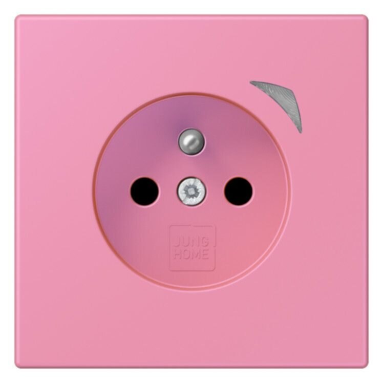 JUNG HOME Steckdose, französisch/belgisches System, rose vif2-polig mit Erdungsstift, 16 A 250 V ~CEE 7/5mit integriertem erhöhten Berührungsschutz (Safety Plus)mit Schraubklemmen für starre und flexible Leiter bis 2,5 mm2Verbindungsklemmen nach DIN VDE 0620Tragring, Krallen und Krallenschrauben sind über eine Erdungsschiene in die Schutzmaßnahme eingebunden.Bestimmungsgemäßer GebrauchManuelles oder automatisches Schalten von Beleuchtung und haushaltsüblichen GerätenDrahtlose Verknüpfung mit Geräten des JUNG HOME SystemsEinsatz im trockenen InnenbereichMontage in Gerätedose mit Abmessungen nach DIN 49073Tiefe der Gerätedose (Innenmaß): min. 50 mm ProdukteigenschaftenInbetriebnahme und Bedienung über JUNG HOME App mit mobilem Endgerät (Smartphone oder Tablet) über Bluetooth®Taste zum SchaltenMehrfarbige Statusanzeige mit optionalem NachtmodusSperren der lokalen BedienungBis zu 16 ZeitprogrammeEinbindung der Last in Bereiche (Gruppen), Zentralfunktionen und SzenenAutomatikfunktionen aktivieren/deaktivieren über JUNG HOME AppAutomatische Datum- und Uhrzeitaktualisierung bei Verbindung mit SmartphoneIntegrierter Schaltaktor mit 16 ABluetooth® SIG Mesh für voll verschlüsselte drahtlose Kommunikation und RepeaterfunktionUpdatefähig über JUNG HOME App Zukünftig per Update verfügbar:(Hinweise zu Updates und Terminen finden sie unter jung.group/junghome)Sperr- und Zwangsführung: Dauer-EIN/AUS oder für feste Zeit EIN/AUSZeitprogramme mit Sonnenauf- bzw. Sonnenuntergang (Astrotimer)Zeitprogramme mit ZufallszeitpunktEin-/ AusschaltverzögerungMaterial: Thermoplast lackiertMaße (B x H): 70 x 70 mm