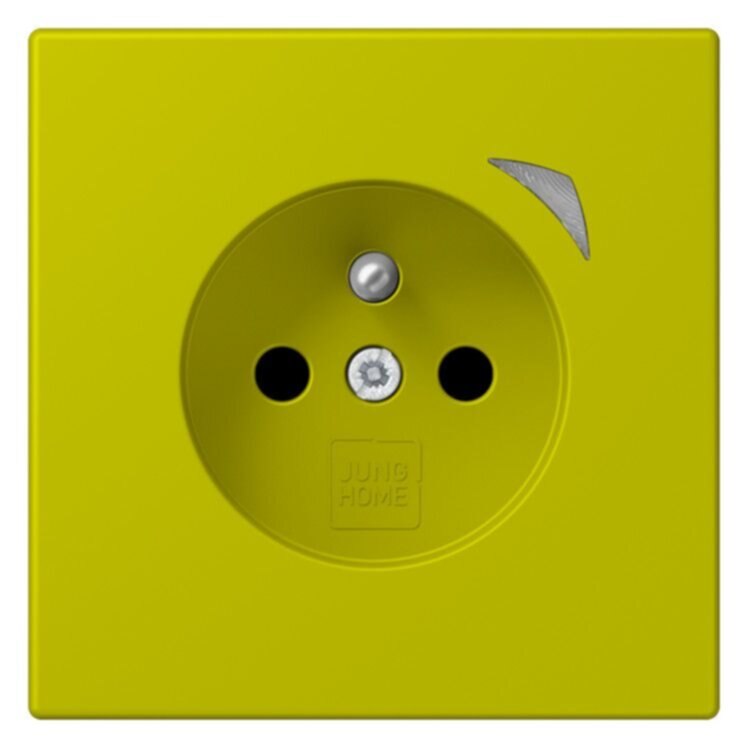 JUNG HOME Steckdose, französisch/belgisches System, vert olive vif2-polig mit Erdungsstift, 16 A 250 V ~CEE 7/5mit integriertem erhöhten Berührungsschutz (Safety Plus)mit Schraubklemmen für starre und flexible Leiter bis 2,5 mm2Verbindungsklemmen nach DIN VDE 0620Tragring, Krallen und Krallenschrauben sind über eine Erdungsschiene in die Schutzmaßnahme eingebunden.Bestimmungsgemäßer GebrauchManuelles oder automatisches Schalten von Beleuchtung und haushaltsüblichen GerätenDrahtlose Verknüpfung mit Geräten des JUNG HOME SystemsEinsatz im trockenen InnenbereichMontage in Gerätedose mit Abmessungen nach DIN 49073Tiefe der Gerätedose (Innenmaß): min. 50 mm ProdukteigenschaftenInbetriebnahme und Bedienung über JUNG HOME App mit mobilem Endgerät (Smartphone oder Tablet) über Bluetooth®Taste zum SchaltenMehrfarbige Statusanzeige mit optionalem NachtmodusSperren der lokalen BedienungBis zu 16 ZeitprogrammeEinbindung der Last in Bereiche (Gruppen), Zentralfunktionen und SzenenAutomatikfunktionen aktivieren/deaktivieren über JUNG HOME AppAutomatische Datum- und Uhrzeitaktualisierung bei Verbindung mit SmartphoneIntegrierter Schaltaktor mit 16 ABluetooth® SIG Mesh für voll verschlüsselte drahtlose Kommunikation und RepeaterfunktionUpdatefähig über JUNG HOME App Zukünftig per Update verfügbar:(Hinweise zu Updates und Terminen finden sie unter jung.group/junghome)Sperr- und Zwangsführung: Dauer-EIN/AUS oder für feste Zeit EIN/AUSZeitprogramme mit Sonnenauf- bzw. Sonnenuntergang (Astrotimer)Zeitprogramme mit ZufallszeitpunktEin-/ AusschaltverzögerungMaterial: Thermoplast lackiertMaße (B x H): 70 x 70 mm
