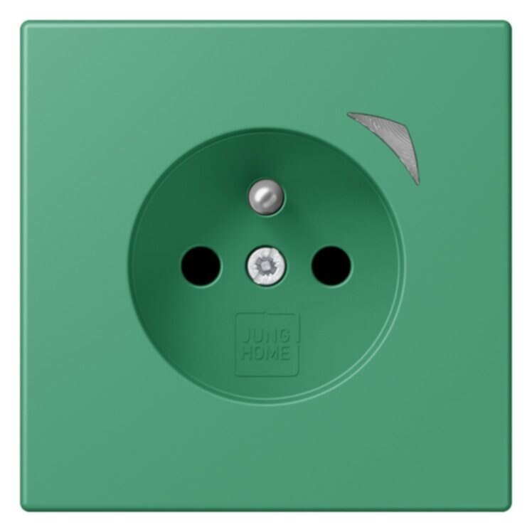 JUNG HOME Steckdose, französisch/belgisches System, vert 592-polig mit Erdungsstift, 16 A 250 V ~CEE 7/5mit integriertem erhöhten Berührungsschutz (Safety Plus)mit Schraubklemmen für starre und flexible Leiter bis 2,5 mm2Verbindungsklemmen nach DIN VDE 0620Tragring, Krallen und Krallenschrauben sind über eine Erdungsschiene in die Schutzmaßnahme eingebunden.Bestimmungsgemäßer GebrauchManuelles oder automatisches Schalten von Beleuchtung und haushaltsüblichen GerätenDrahtlose Verknüpfung mit Geräten des JUNG HOME SystemsEinsatz im trockenen InnenbereichMontage in Gerätedose mit Abmessungen nach DIN 49073Tiefe der Gerätedose (Innenmaß): min. 50 mm ProdukteigenschaftenInbetriebnahme und Bedienung über JUNG HOME App mit mobilem Endgerät (Smartphone oder Tablet) über Bluetooth®Taste zum SchaltenMehrfarbige Statusanzeige mit optionalem NachtmodusSperren der lokalen BedienungBis zu 16 ZeitprogrammeEinbindung der Last in Bereiche (Gruppen), Zentralfunktionen und SzenenAutomatikfunktionen aktivieren/deaktivieren über JUNG HOME AppAutomatische Datum- und Uhrzeitaktualisierung bei Verbindung mit SmartphoneIntegrierter Schaltaktor mit 16 ABluetooth® SIG Mesh für voll verschlüsselte drahtlose Kommunikation und RepeaterfunktionUpdatefähig über JUNG HOME App Zukünftig per Update verfügbar:(Hinweise zu Updates und Terminen finden sie unter jung.group/junghome)Sperr- und Zwangsführung: Dauer-EIN/AUS oder für feste Zeit EIN/AUSZeitprogramme mit Sonnenauf- bzw. Sonnenuntergang (Astrotimer)Zeitprogramme mit ZufallszeitpunktEin-/ AusschaltverzögerungMaterial: Thermoplast lackiertMaße (B x H): 70 x 70 mm