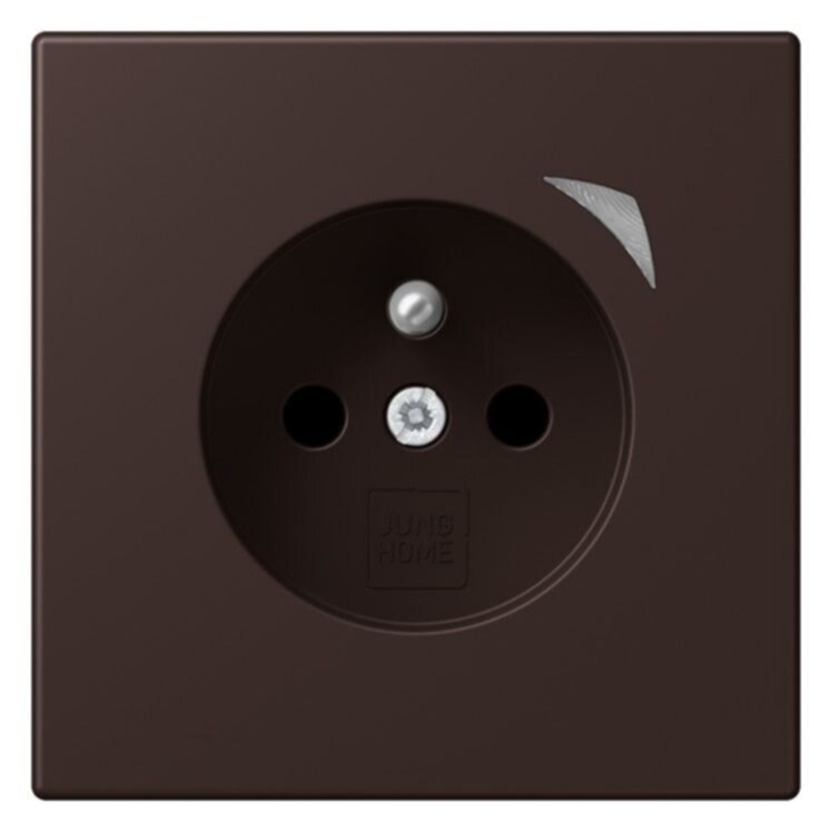 JUNG HOME Steckdose, französisch/belgisches System, terre d’ombre brûlée 592-polig mit Erdungsstift, 16 A 250 V ~CEE 7/5mit integriertem erhöhten Berührungsschutz (Safety Plus)mit Schraubklemmen für starre und flexible Leiter bis 2,5 mm2Verbindungsklemmen nach DIN VDE 0620Tragring, Krallen und Krallenschrauben sind über eine Erdungsschiene in die Schutzmaßnahme eingebunden.Bestimmungsgemäßer GebrauchManuelles oder automatisches Schalten von Beleuchtung und haushaltsüblichen GerätenDrahtlose Verknüpfung mit Geräten des JUNG HOME SystemsEinsatz im trockenen InnenbereichMontage in Gerätedose mit Abmessungen nach DIN 49073Tiefe der Gerätedose (Innenmaß): min. 50 mm ProdukteigenschaftenInbetriebnahme und Bedienung über JUNG HOME App mit mobilem Endgerät (Smartphone oder Tablet) über Bluetooth®Taste zum SchaltenMehrfarbige Statusanzeige mit optionalem NachtmodusSperren der lokalen BedienungBis zu 16 ZeitprogrammeEinbindung der Last in Bereiche (Gruppen), Zentralfunktionen und SzenenAutomatikfunktionen aktivieren/deaktivieren über JUNG HOME AppAutomatische Datum- und Uhrzeitaktualisierung bei Verbindung mit SmartphoneIntegrierter Schaltaktor mit 16 ABluetooth® SIG Mesh für voll verschlüsselte drahtlose Kommunikation und RepeaterfunktionUpdatefähig über JUNG HOME App Zukünftig per Update verfügbar:(Hinweise zu Updates und Terminen finden sie unter jung.group/junghome)Sperr- und Zwangsführung: Dauer-EIN/AUS oder für feste Zeit EIN/AUSZeitprogramme mit Sonnenauf- bzw. Sonnenuntergang (Astrotimer)Zeitprogramme mit ZufallszeitpunktEin-/ AusschaltverzögerungMaterial: Thermoplast lackiertMaße (B x H): 70 x 70 mm