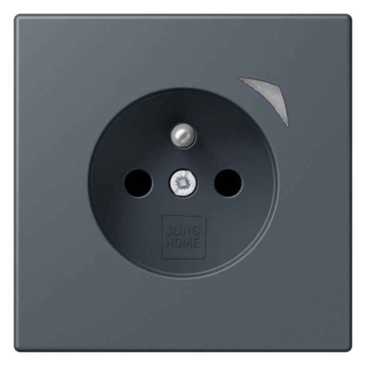 JUNG HOME Steckdose, französisch/belgisches System, gris fonce 592-polig mit Erdungsstift, 16 A 250 V ~CEE 7/5mit integriertem erhöhten Berührungsschutz (Safety Plus)mit Schraubklemmen für starre und flexible Leiter bis 2,5 mm2Verbindungsklemmen nach DIN VDE 0620Tragring, Krallen und Krallenschrauben sind über eine Erdungsschiene in die Schutzmaßnahme eingebunden.Bestimmungsgemäßer GebrauchManuelles oder automatisches Schalten von Beleuchtung und haushaltsüblichen GerätenDrahtlose Verknüpfung mit Geräten des JUNG HOME SystemsEinsatz im trockenen InnenbereichMontage in Gerätedose mit Abmessungen nach DIN 49073Tiefe der Gerätedose (Innenmaß): min. 50 mm ProdukteigenschaftenInbetriebnahme und Bedienung über JUNG HOME App mit mobilem Endgerät (Smartphone oder Tablet) über Bluetooth®Taste zum SchaltenMehrfarbige Statusanzeige mit optionalem NachtmodusSperren der lokalen BedienungBis zu 16 ZeitprogrammeEinbindung der Last in Bereiche (Gruppen), Zentralfunktionen und SzenenAutomatikfunktionen aktivieren/deaktivieren über JUNG HOME AppAutomatische Datum- und Uhrzeitaktualisierung bei Verbindung mit SmartphoneIntegrierter Schaltaktor mit 16 ABluetooth® SIG Mesh für voll verschlüsselte drahtlose Kommunikation und RepeaterfunktionUpdatefähig über JUNG HOME App Zukünftig per Update verfügbar:(Hinweise zu Updates und Terminen finden sie unter jung.group/junghome)Sperr- und Zwangsführung: Dauer-EIN/AUS oder für feste Zeit EIN/AUSZeitprogramme mit Sonnenauf- bzw. Sonnenuntergang (Astrotimer)Zeitprogramme mit ZufallszeitpunktEin-/ AusschaltverzögerungMaterial: Thermoplast lackiertMaße (B x H): 70 x 70 mm