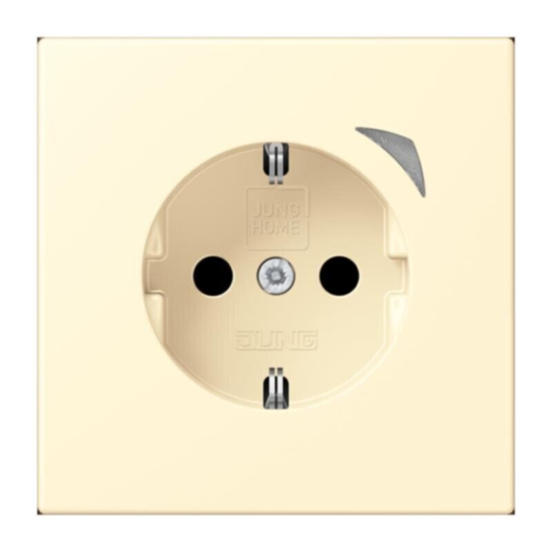 JUNG HOME Schutzkontakt® Steckdose, blanc mit integriertem erhöhten Berührungsschutz (Safety Plus) mit Schraubklemmen für starre und flexible Leiter bis 2,5 mm2 Verbindungsklemmen nach DIN VDE 0620 Tragring, Krallen und Krallenschrauben sind über eine Erdungsschiene in die Schutzmaßnahme eingebunden. Bestimmungsgemäßer Gebrauch Manuelles oder automatisches Schalten von Beleuchtung und haushaltsüblichen Geräten Drahtlose Verknüpfung mit Geräten des JUNG HOME Systems Einsatz im trockenen Innenbereich Montage in Gerätedose mit Abmessungen nach DIN 49073 Tiefe der Gerätedose (Innenmaß): min. 53 mm   Produkteigenschaften Inbetriebnahme und Bedienung über JUNG HOME App mit mobilem Endgerät (Smartphone oder Tablet) über Bluetooth® Taste zum Schalten Mehrfarbige Statusanzeige mit optionalem Nachtmodus Sperren der lokalen Bedienung Bis zu 16 Zeitprogramme Einbindung der Last in Bereiche (Gruppen), Zentralfunktionen und Szenen Automatikfunktionen aktivieren/deaktivieren über JUNG HOME App Automatische Datum- und Uhrzeitaktualisierung bei Verbindung mit Smartphone Integrierter Schaltaktor mit 16 A Bluetooth® SIG Mesh für voll verschlüsselte drahtlose Kommunikation und Repeaterfunktion Updatefähig über JUNG HOME App Zukünftig per Update verfügbar: (Hinweise zu Updates und Terminen finden sie unter jung.group/junghome) Sperr- und Zwangsführung: Dauer-EIN/AUS oder für feste Zeit EIN/AUS Zeitprogramme mit Sonnenauf- bzw. Sonnenuntergang (Astrotimer) Zeitprogramme mit Zufallszeitpunkt Ein-/ Ausschaltverzögerung Material: Thermoplast lackiert Maße (B x H): 70 x 70 mm